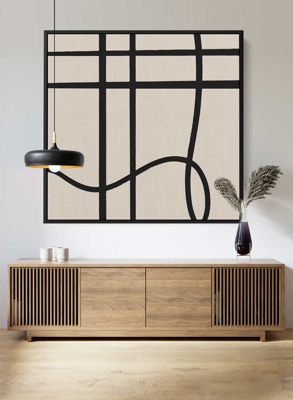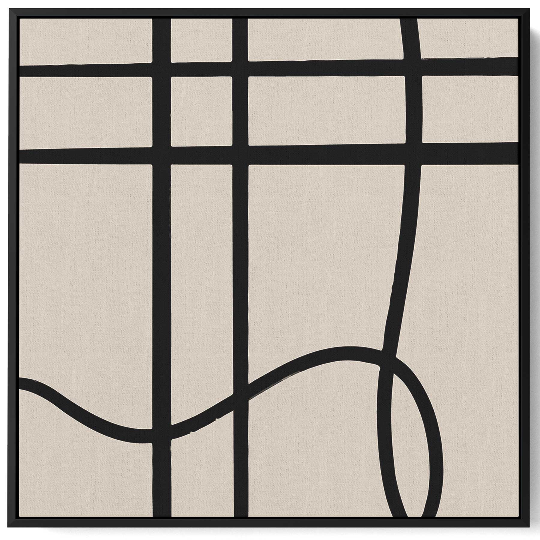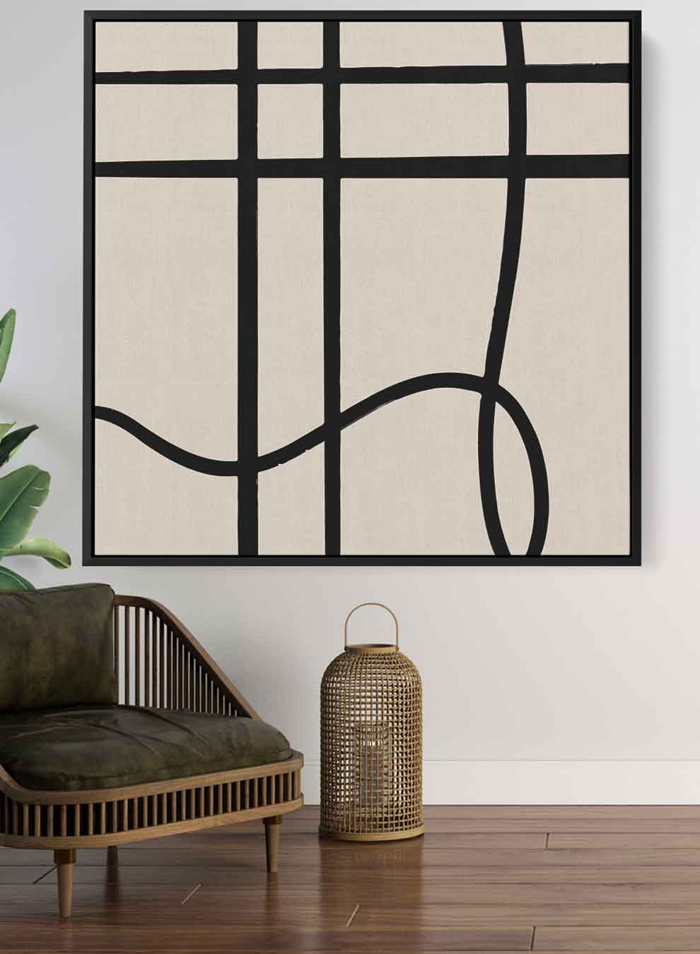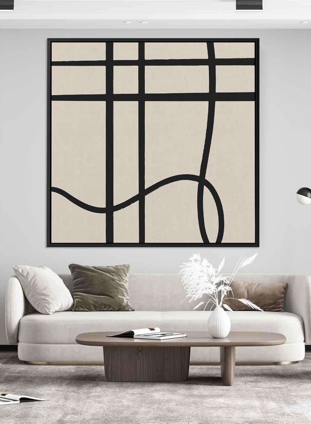 Square Canvas Wall Art Stretched Over Wooden Frame with Black Floating Frame and Scandinavian Abstract Art