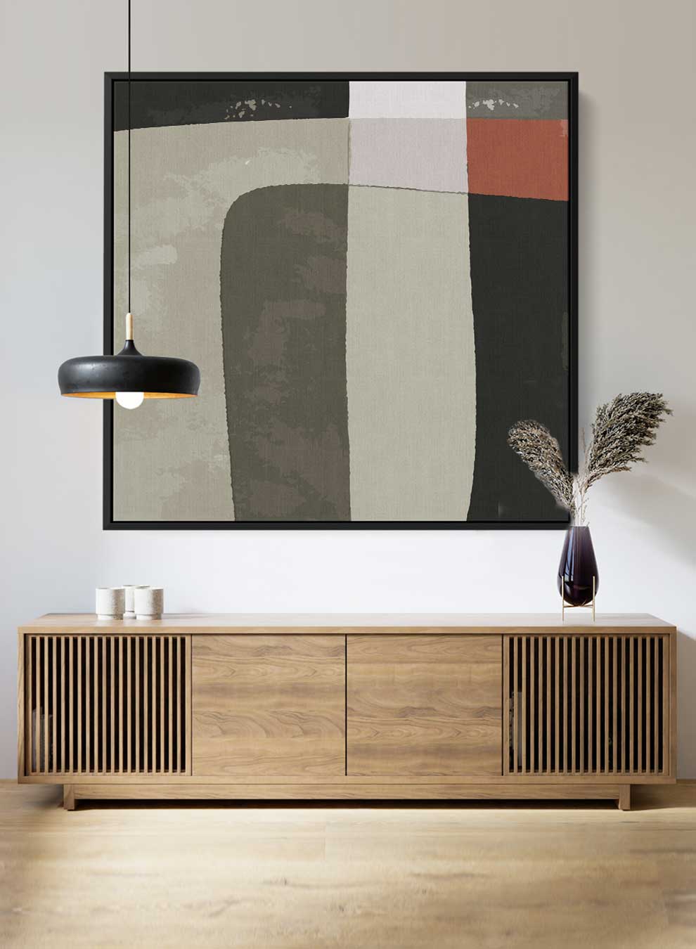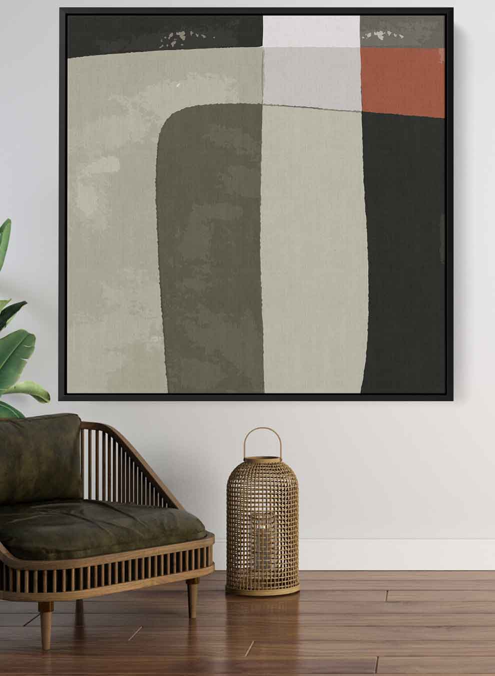 Square Canvas Wall Art Stretched Over Wooden Frame with Black Floating Frame and Scandinavian Abstract Art Painting