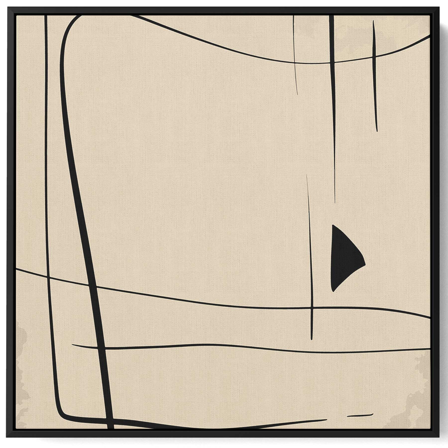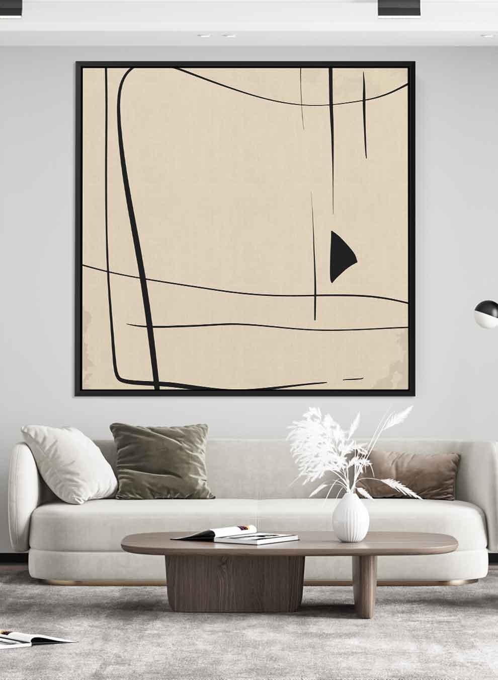 Square Canvas Wall Art Stretched Over Wooden Frame with Black Floating Frame and Scandinavian Abstract Brown Painting