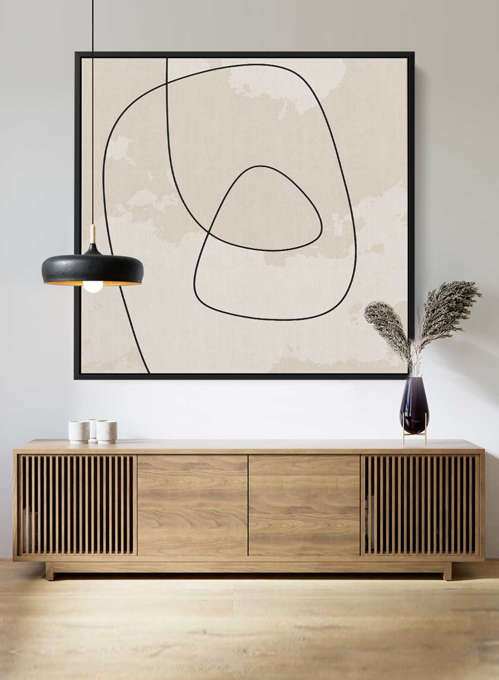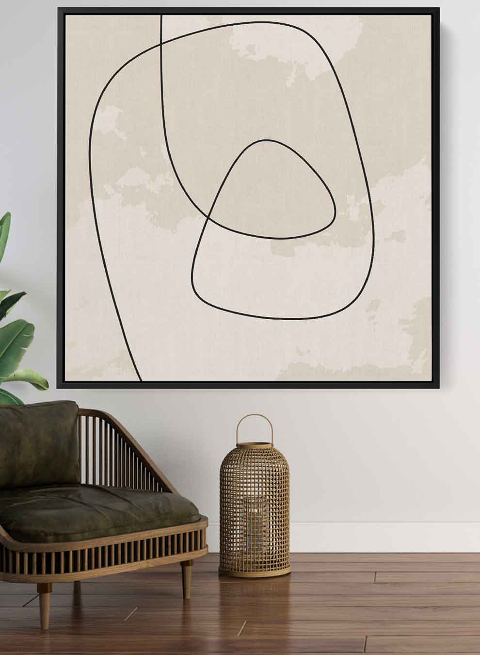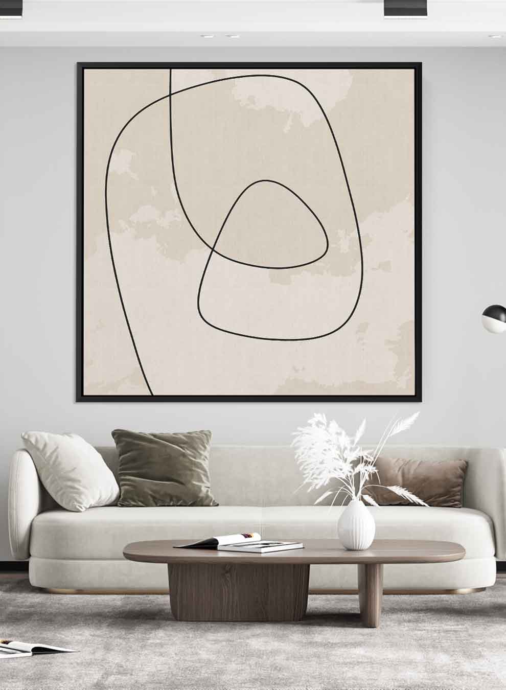 Square Canvas Wall Art Stretched Over Wooden Frame with Black Floating Frame and Scandinavian Abstract Painting