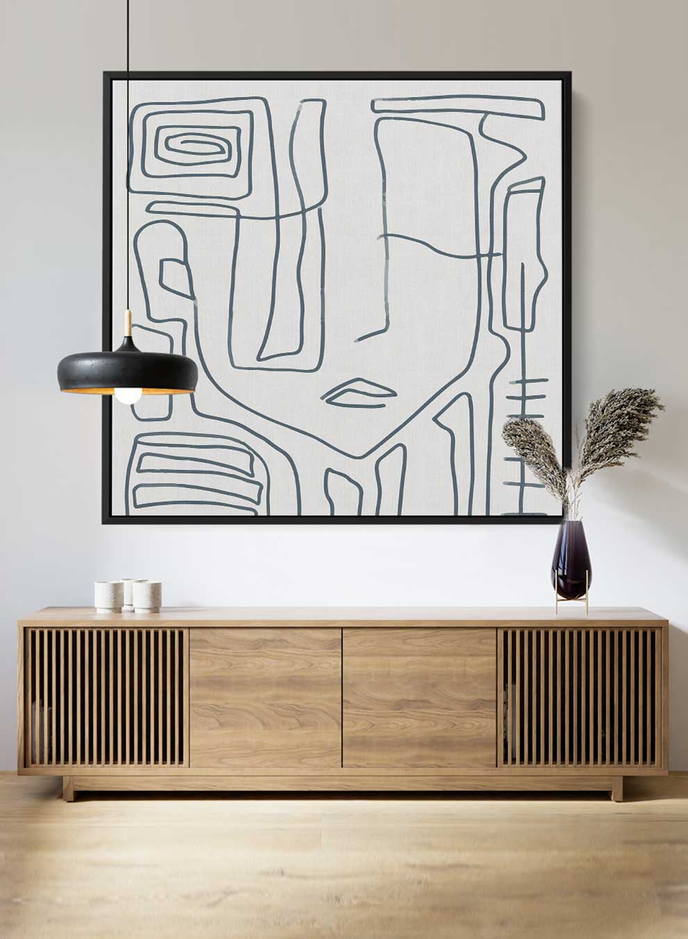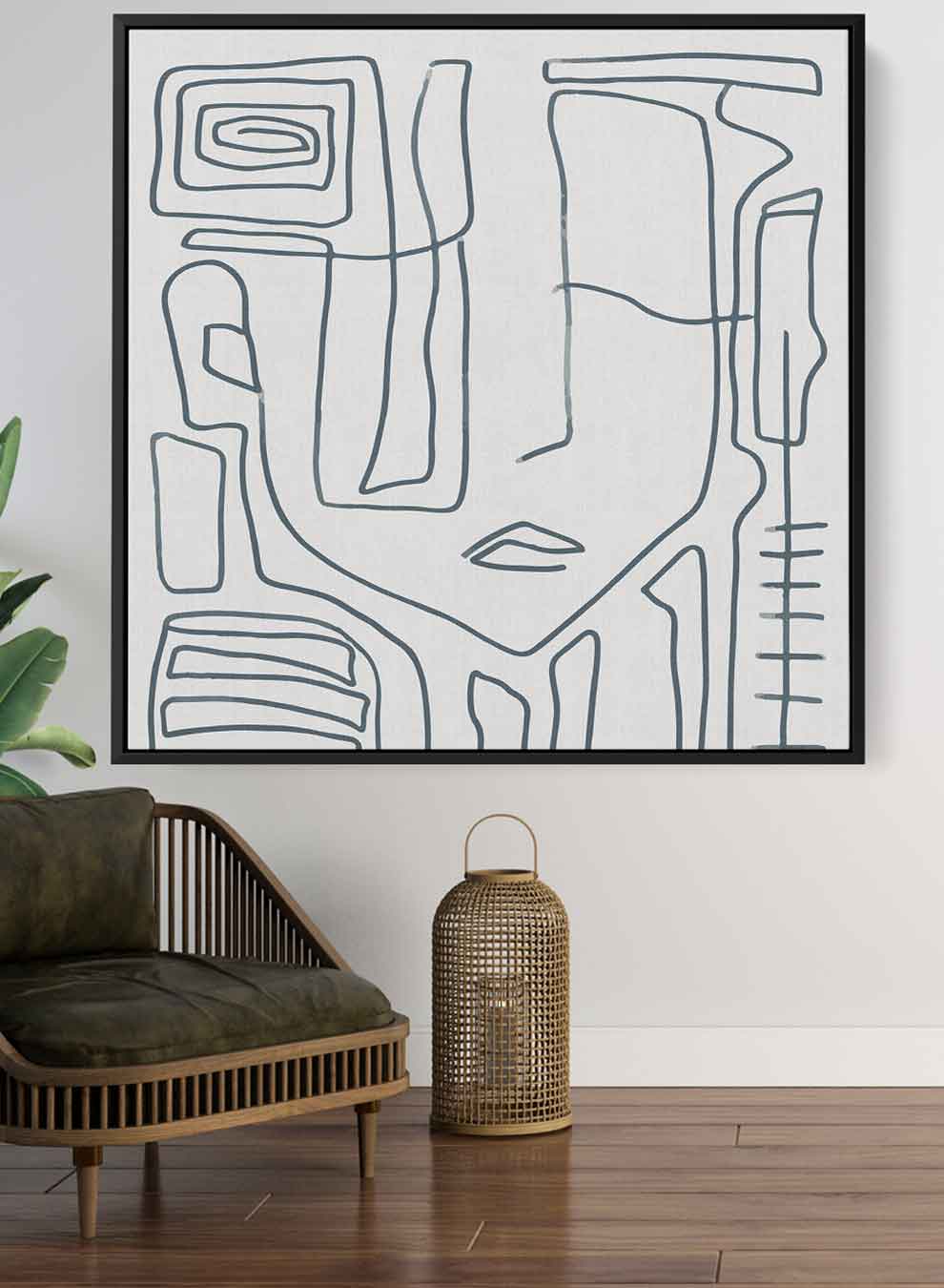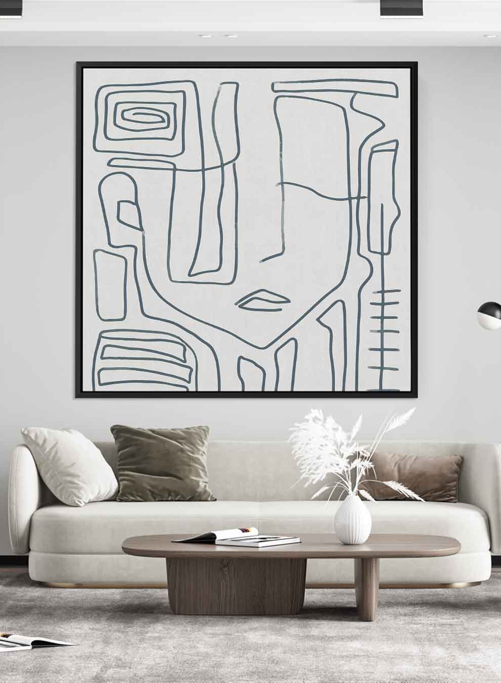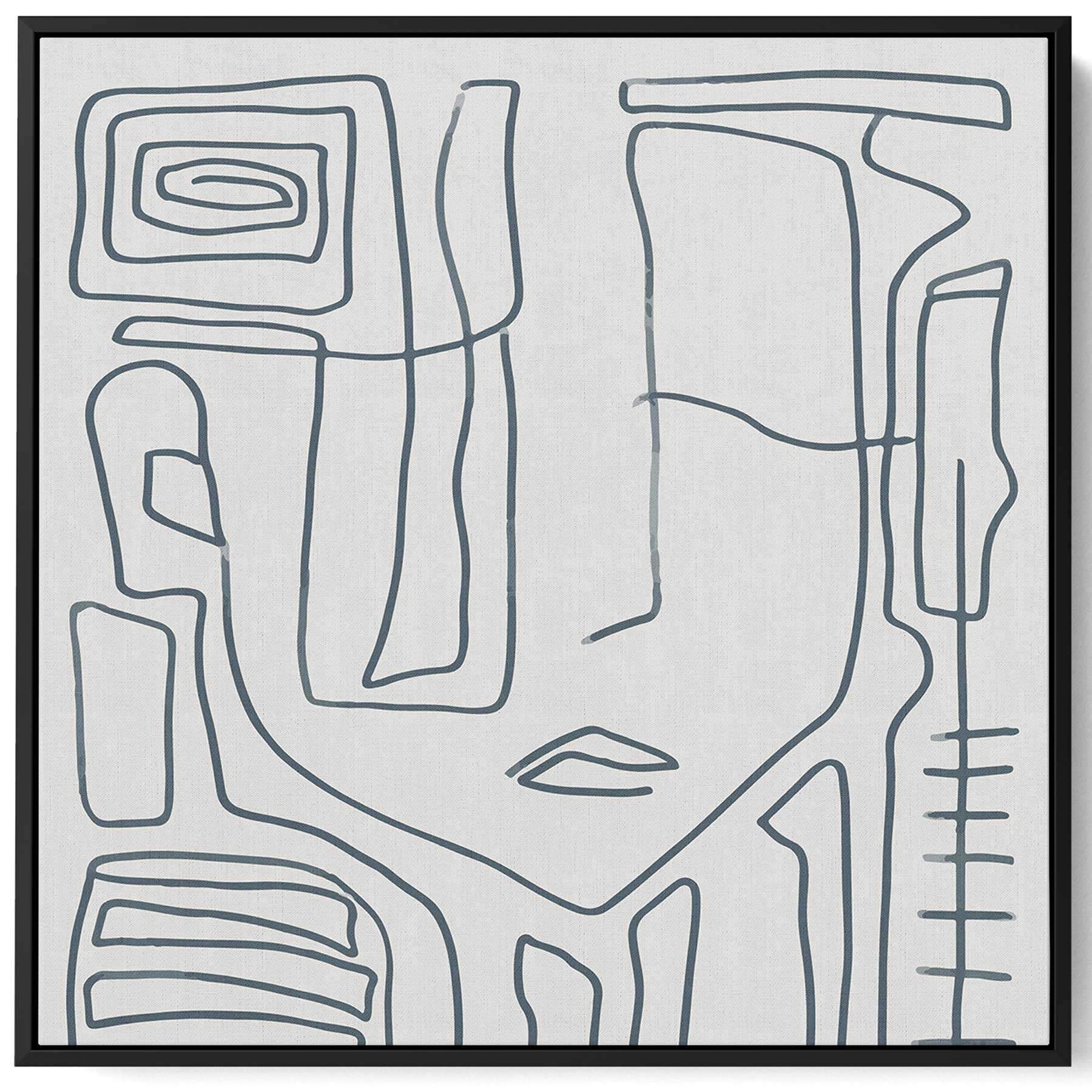 Square Canvas Wall Art Stretched Over Wooden Frame with Black Floating Frame and Scandinavian Abstract Painting Art