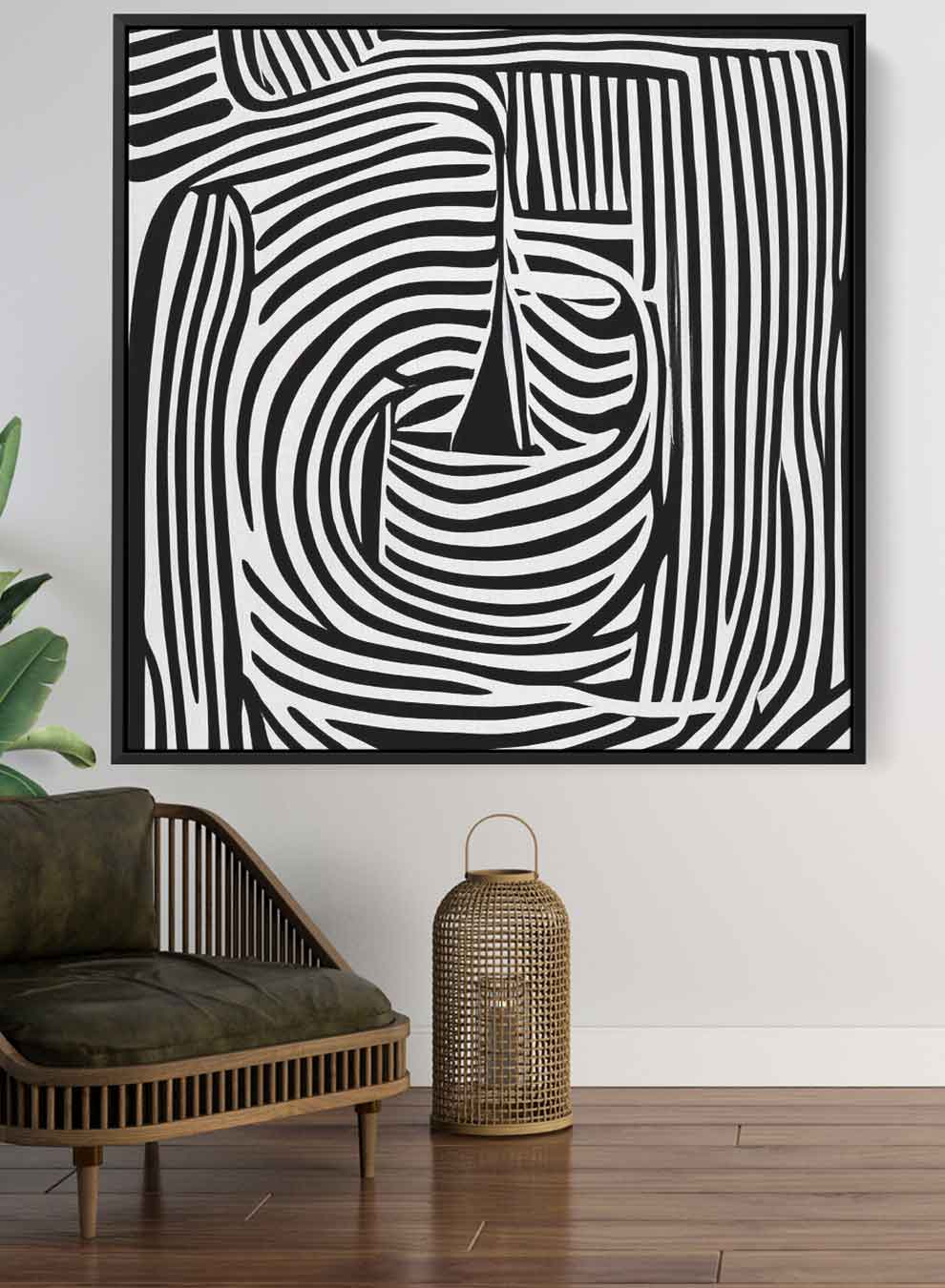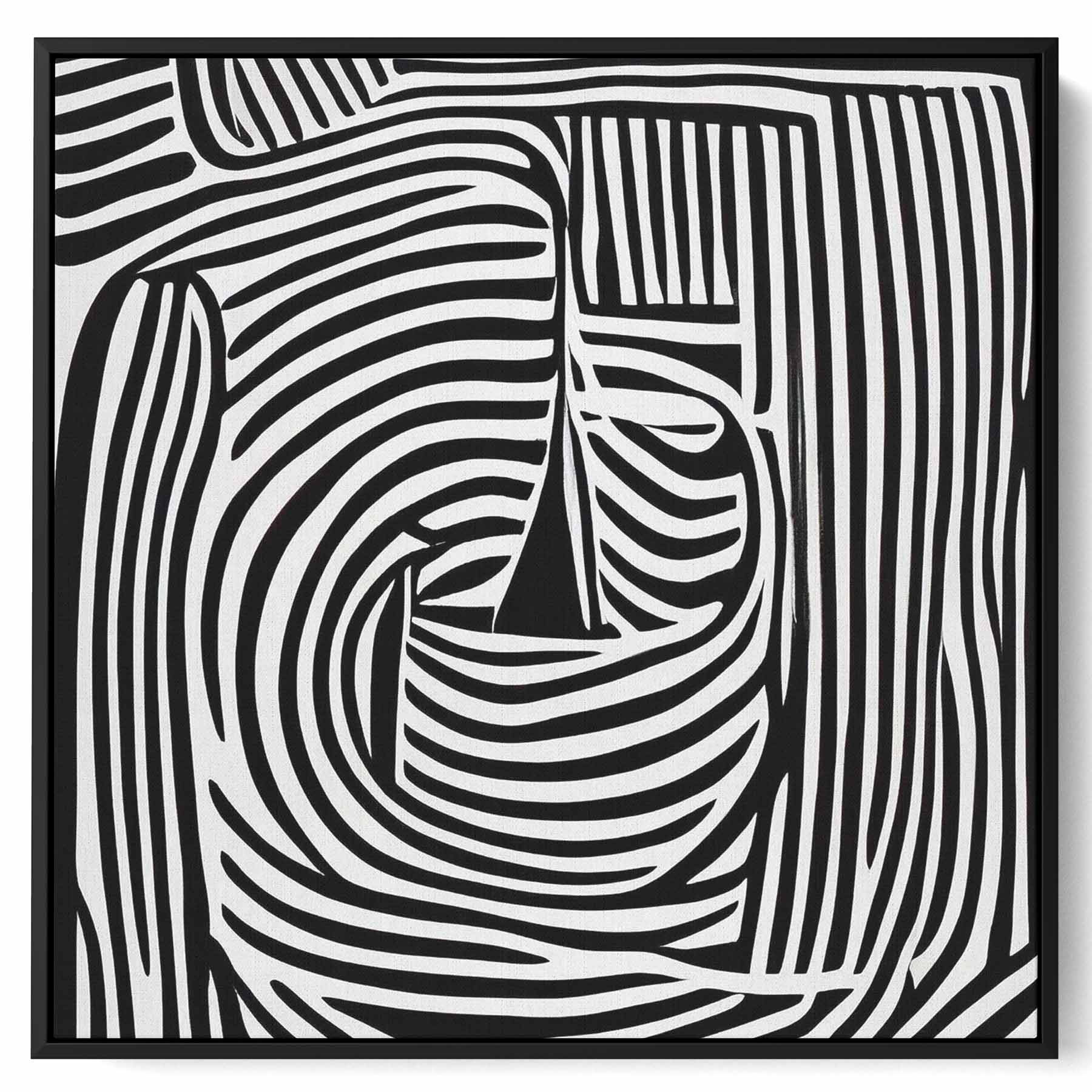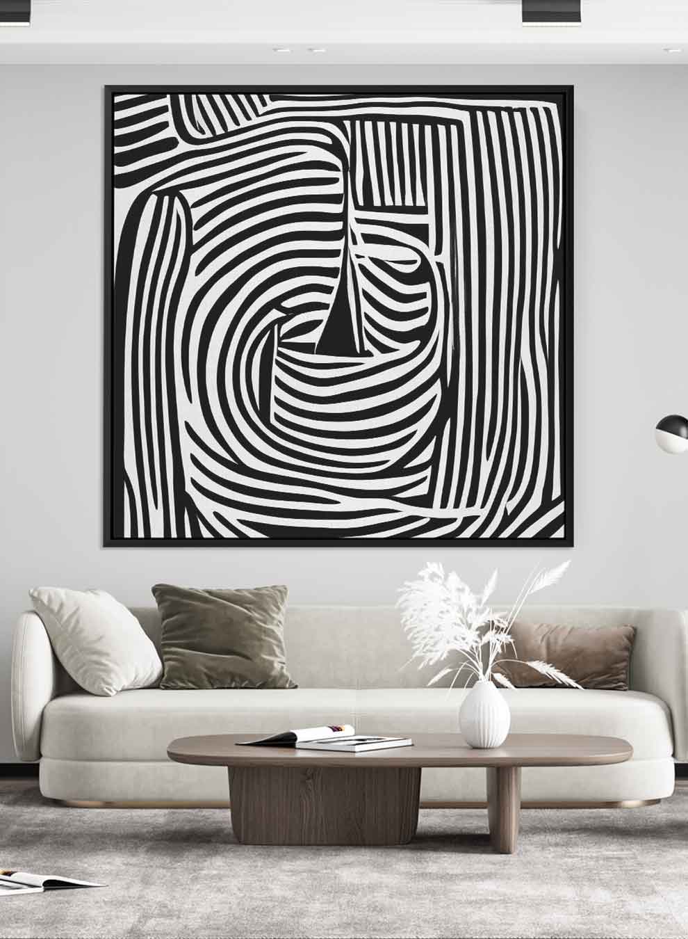 Square Canvas Wall Art Stretched Over Wooden Frame with Black Floating Frame and Sea Waves Abstract Painting