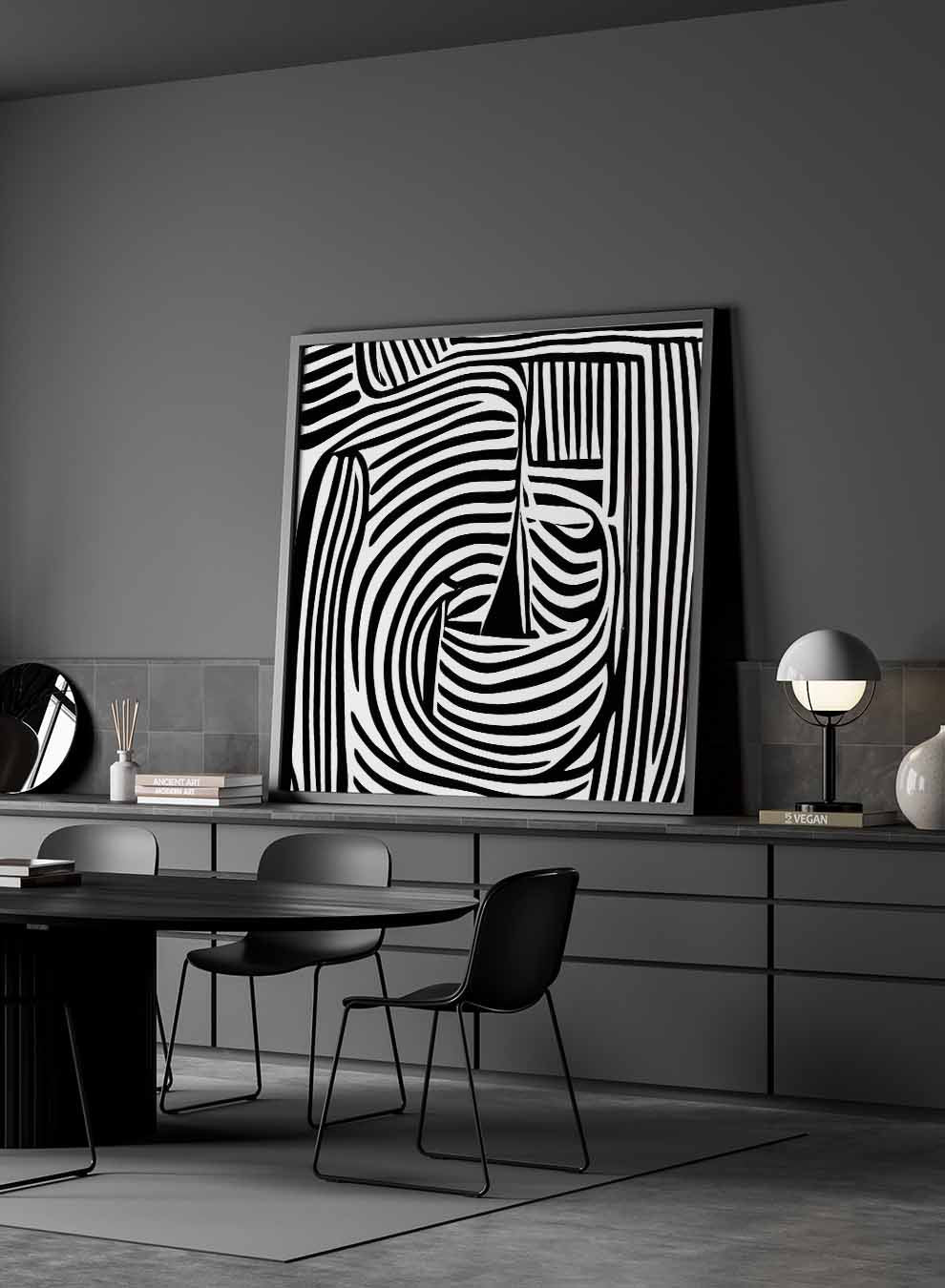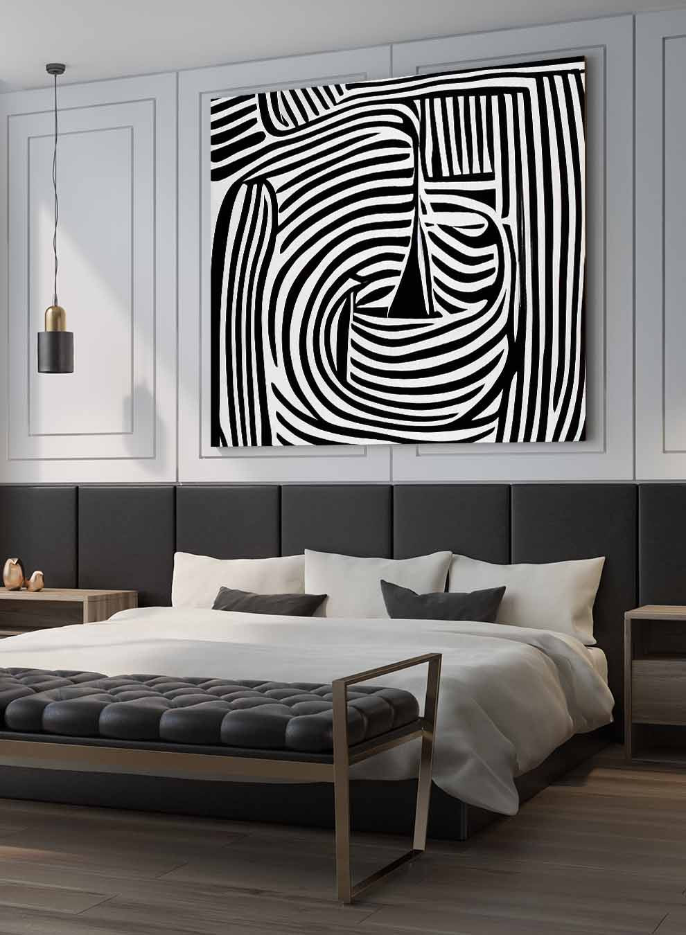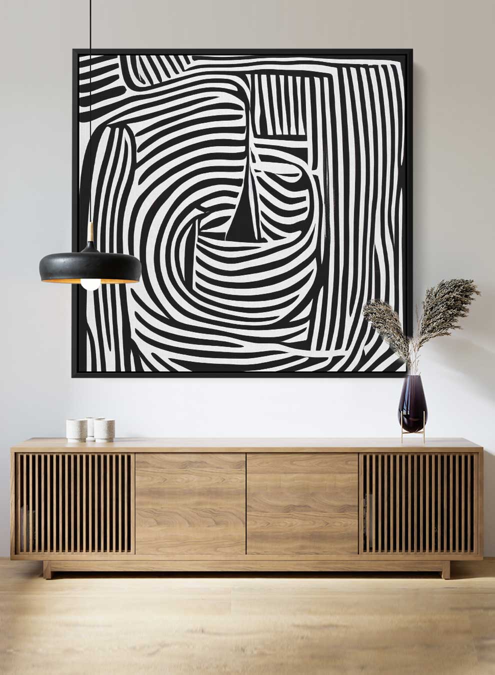 Square Canvas Wall Art Stretched Over Wooden Frame with Black Floating Frame and Sea Waves Abstract Painting