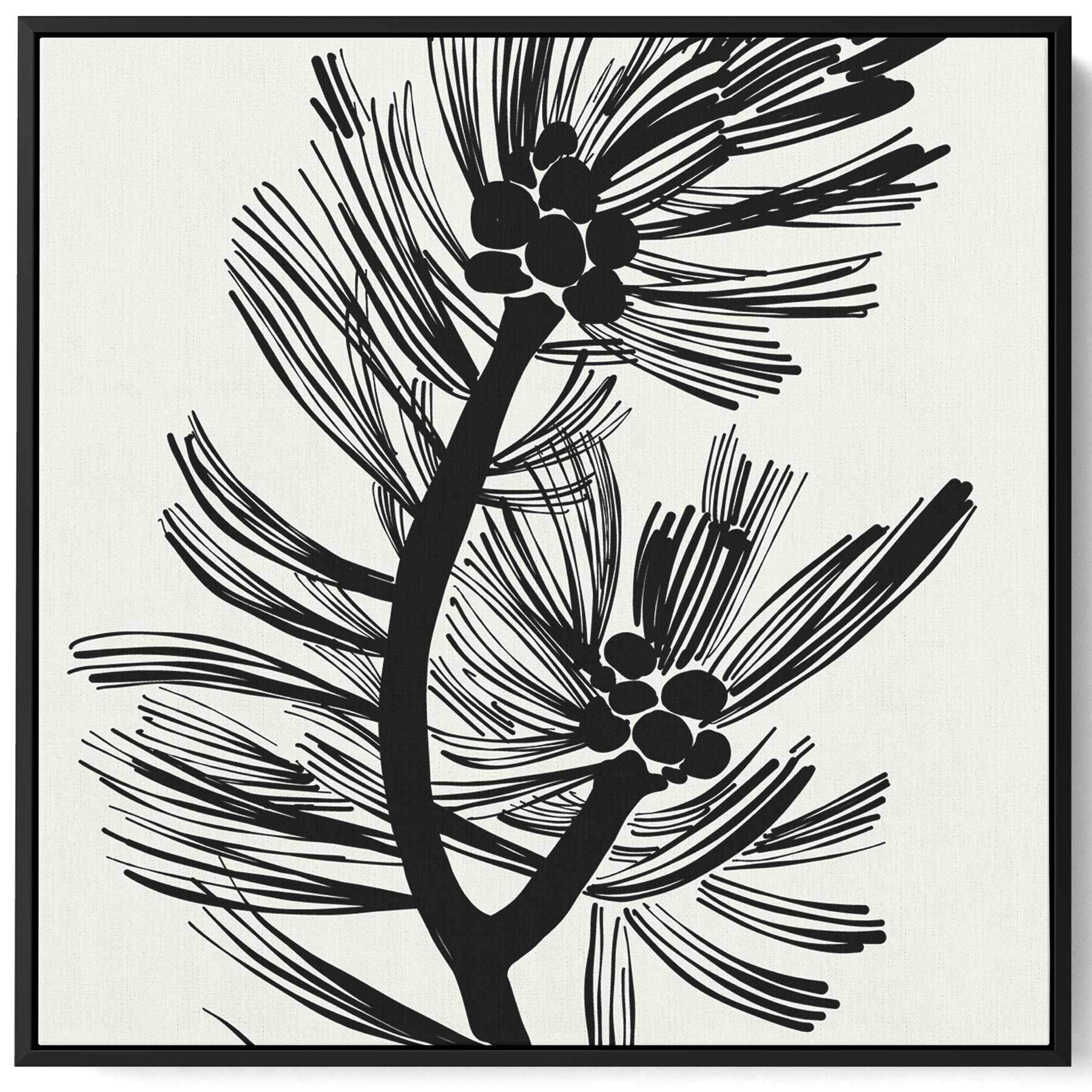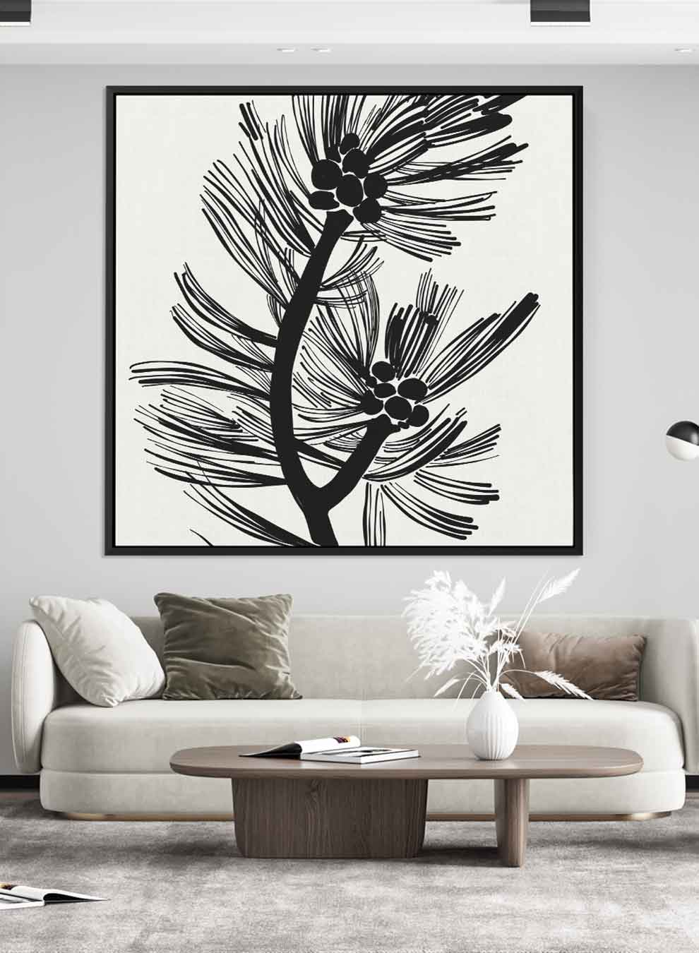 Square Canvas Wall Art Stretched Over Wooden Frame with Black Floating Frame and Trendy Botanical Art Abstract Painting
