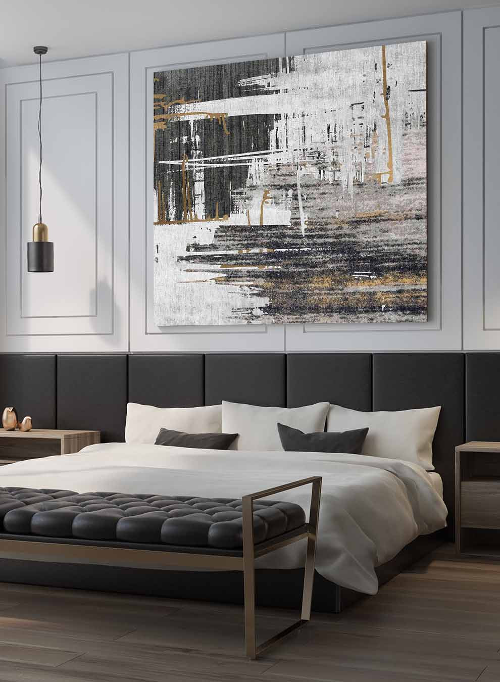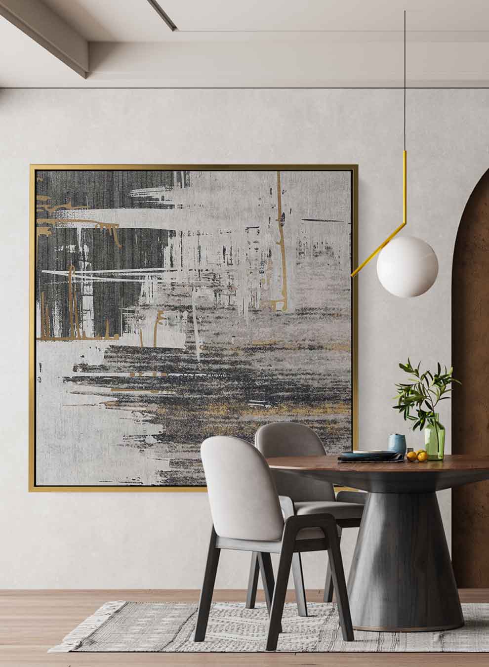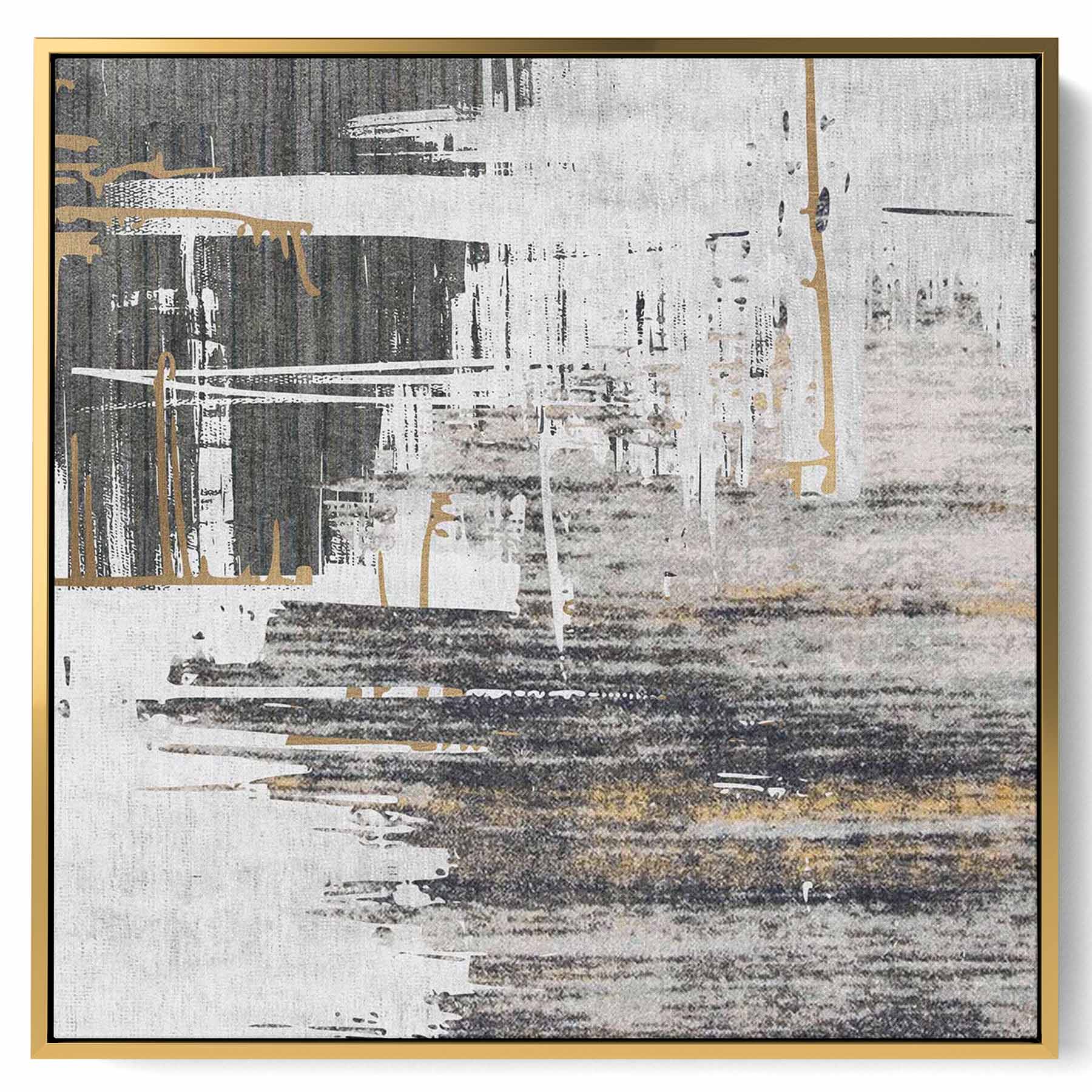 Square Canvas Wall Art Stretched Over Wooden Frame with Gold Floating Frame and Abstract Art Painting2