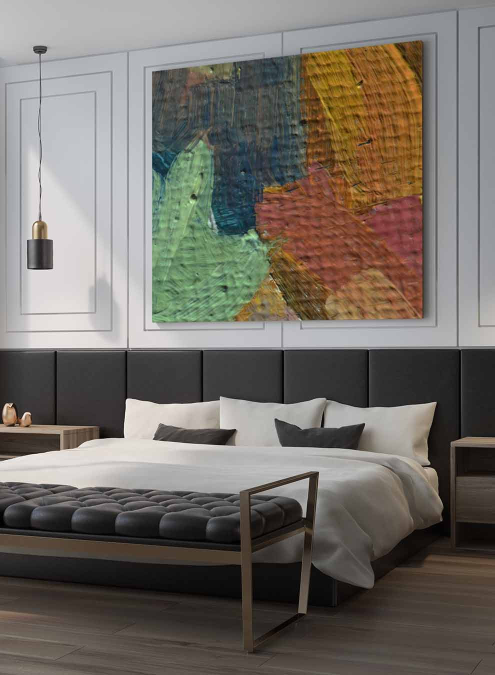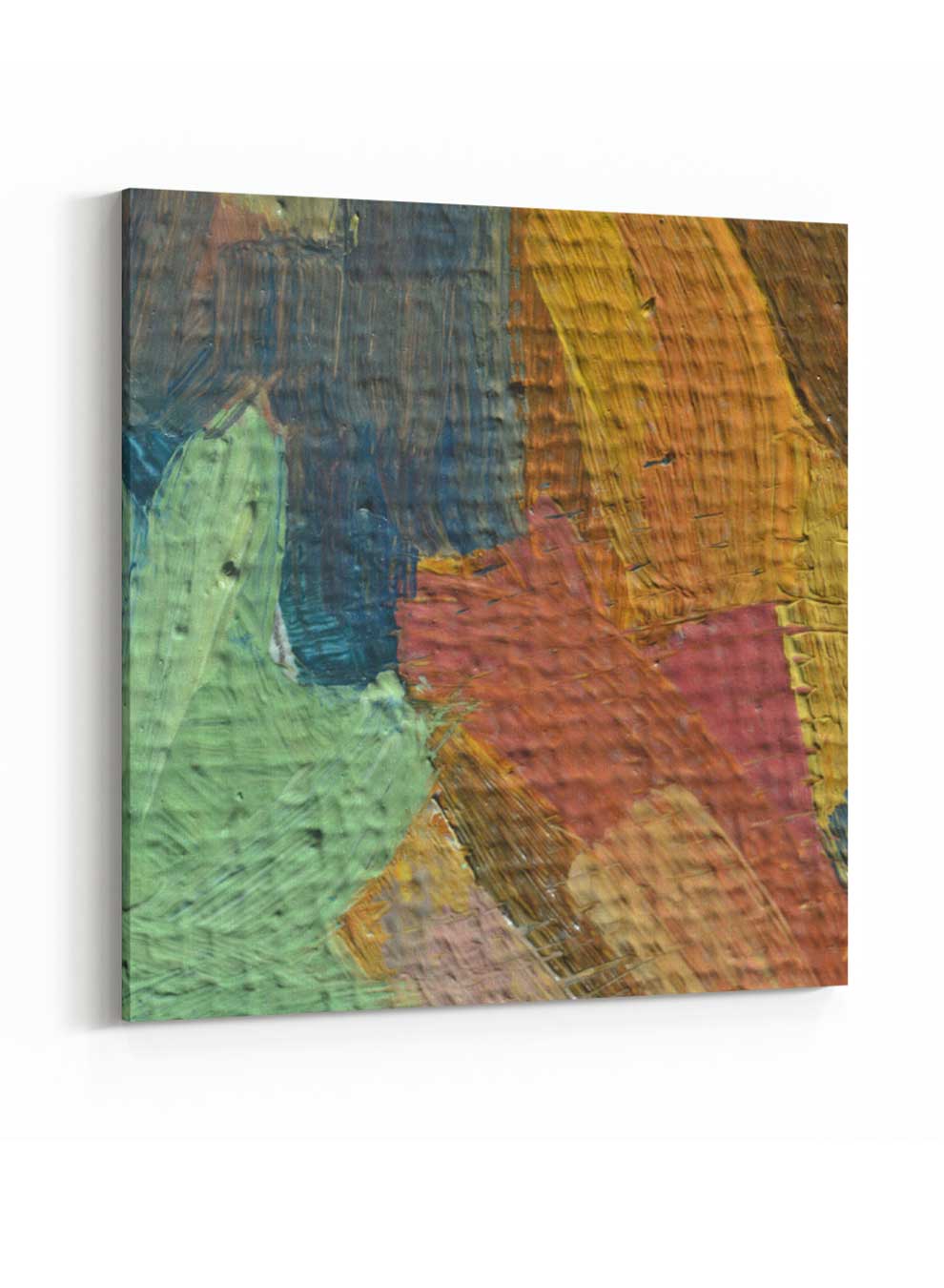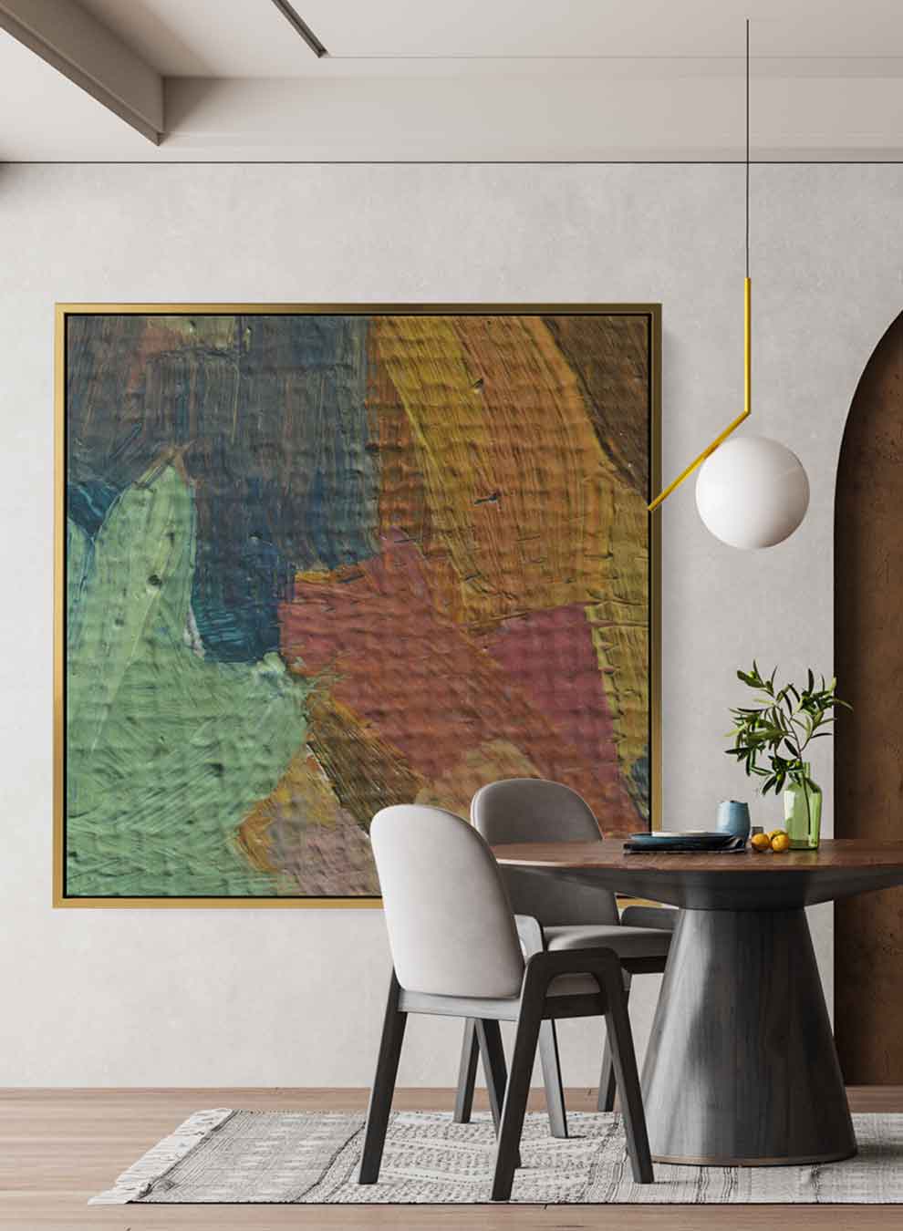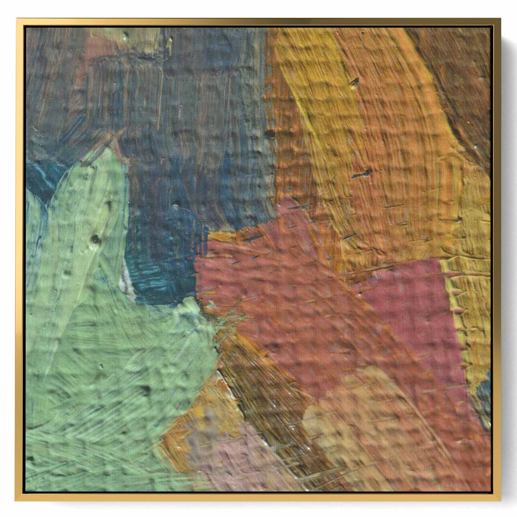 Square Canvas Wall Art Stretched Over Wooden Frame with Gold Floating Frame and Oil Painting
