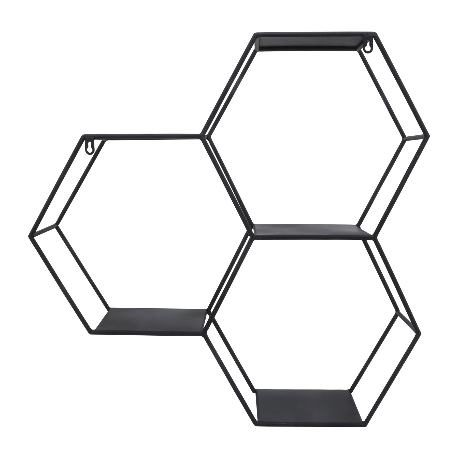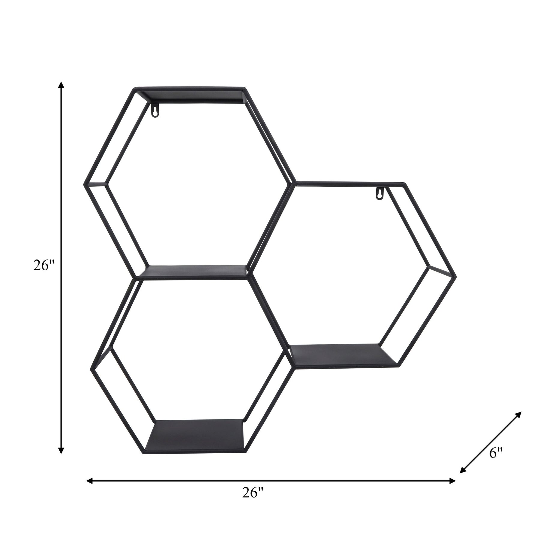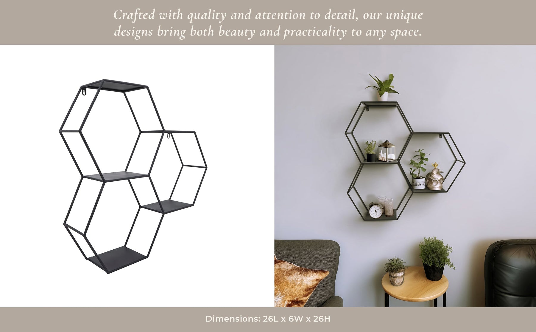 METAL, 26"H HEXAGON WALL SHELF, BLACK - Al Rugaib Furniture