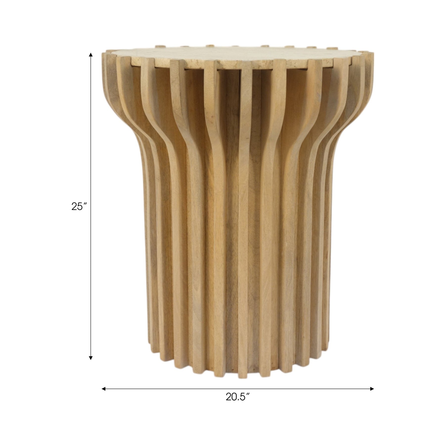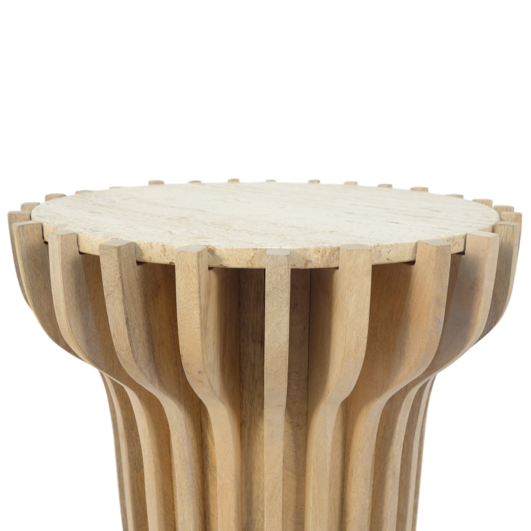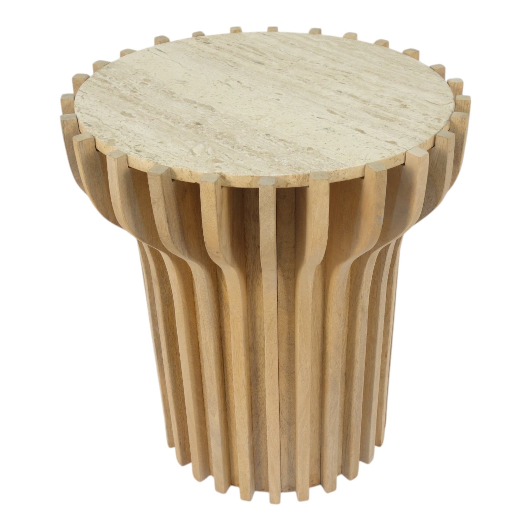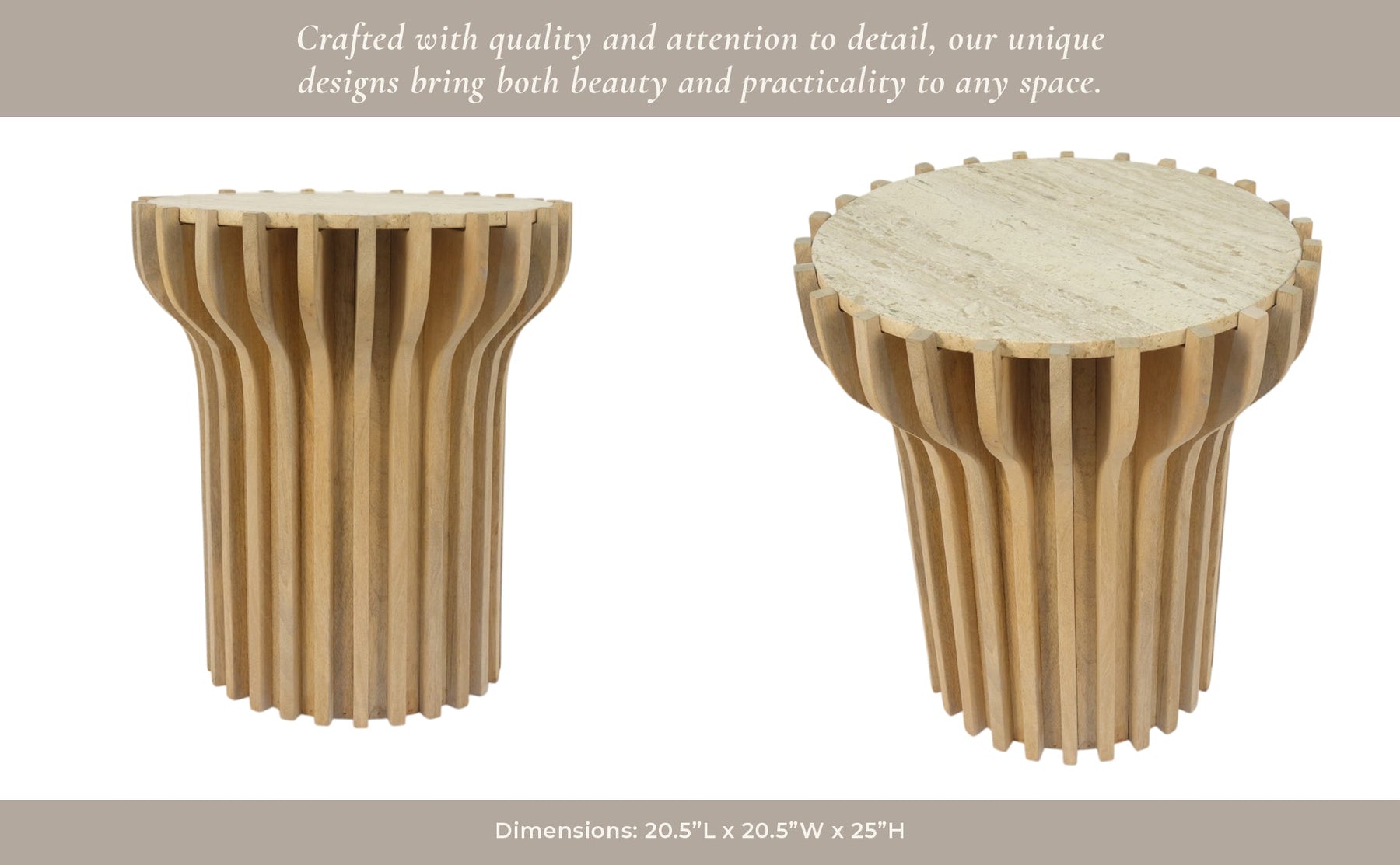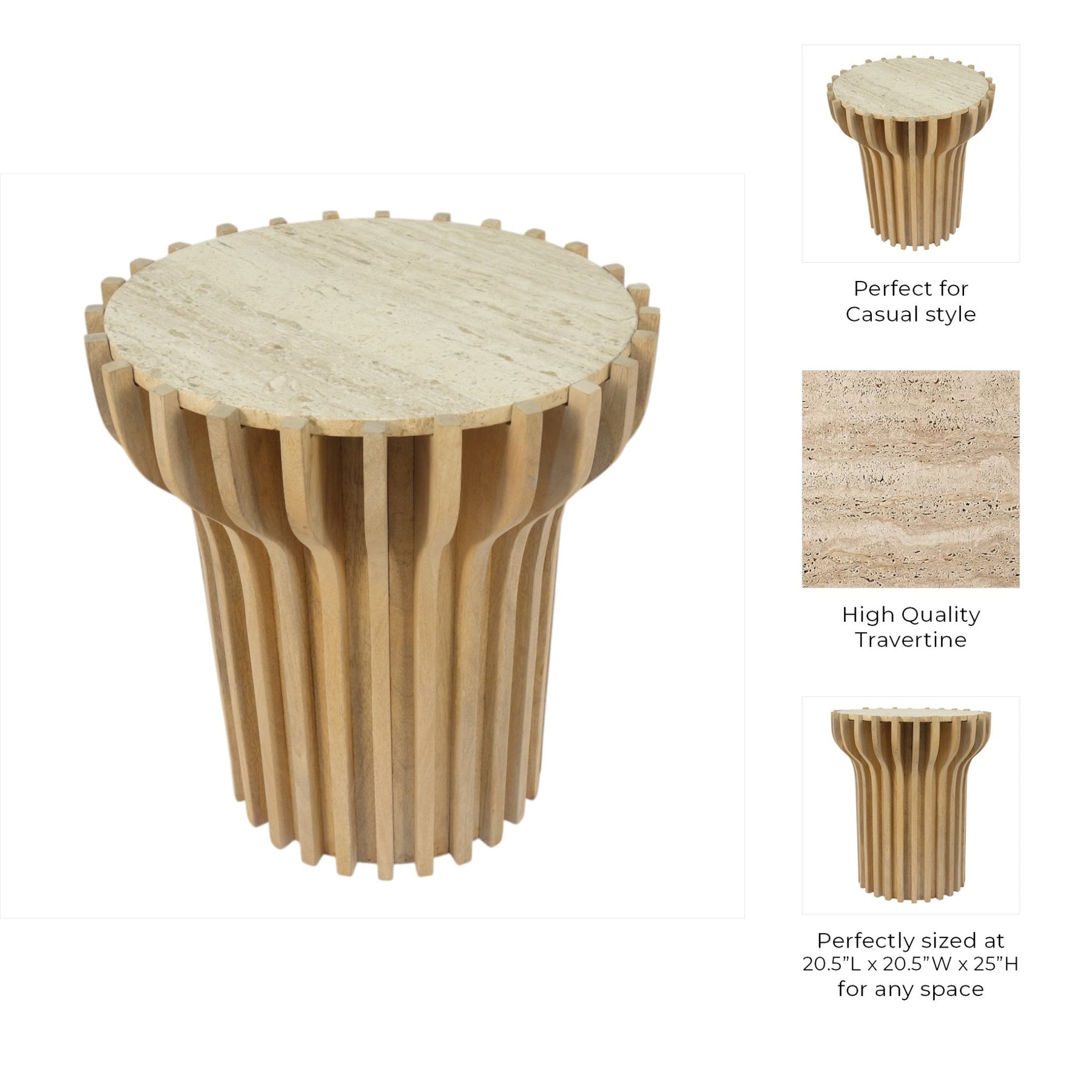 25" Grenoble Wood And Travertine Accent Table, Wht