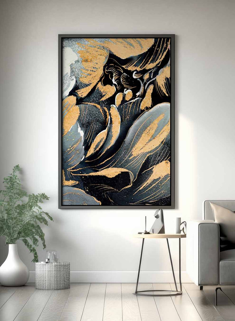 Canvas Wall Art Stretched Over Wooden Frame with Black Floating Frame