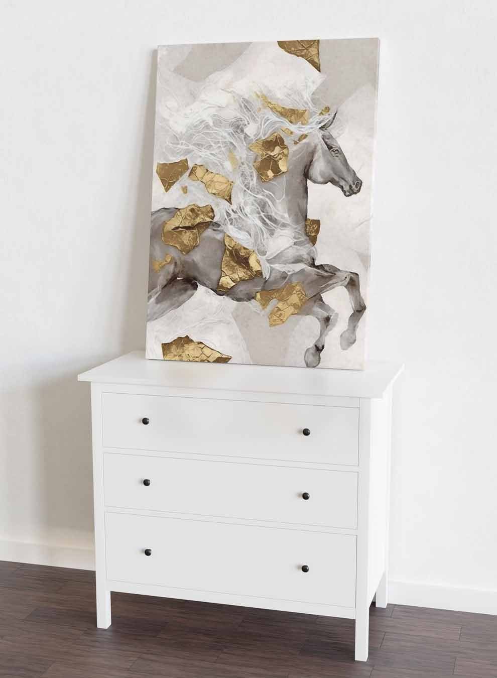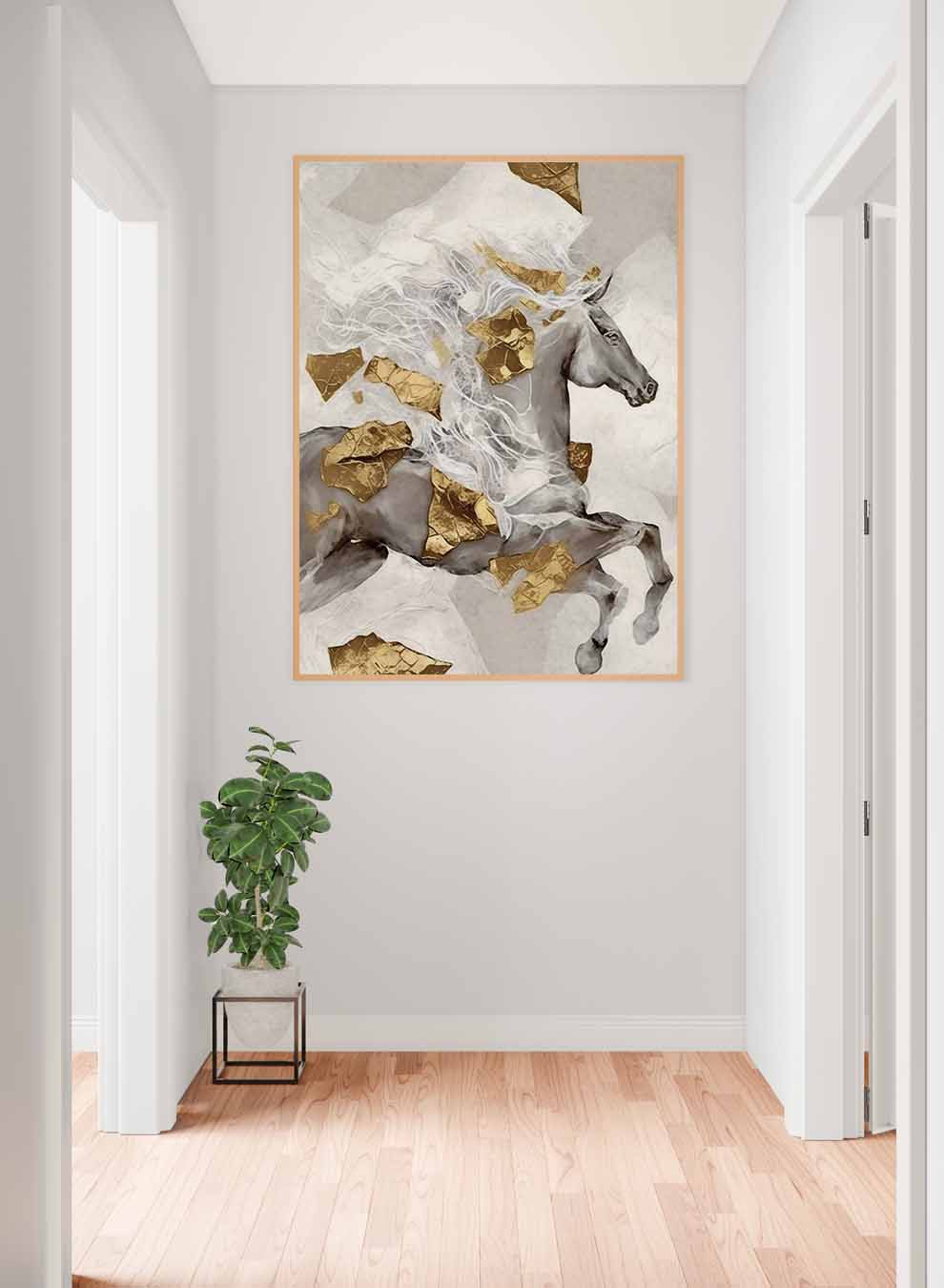 Canvas Wall Art Stretched Over Wooden Frame with Gold Floating Frame