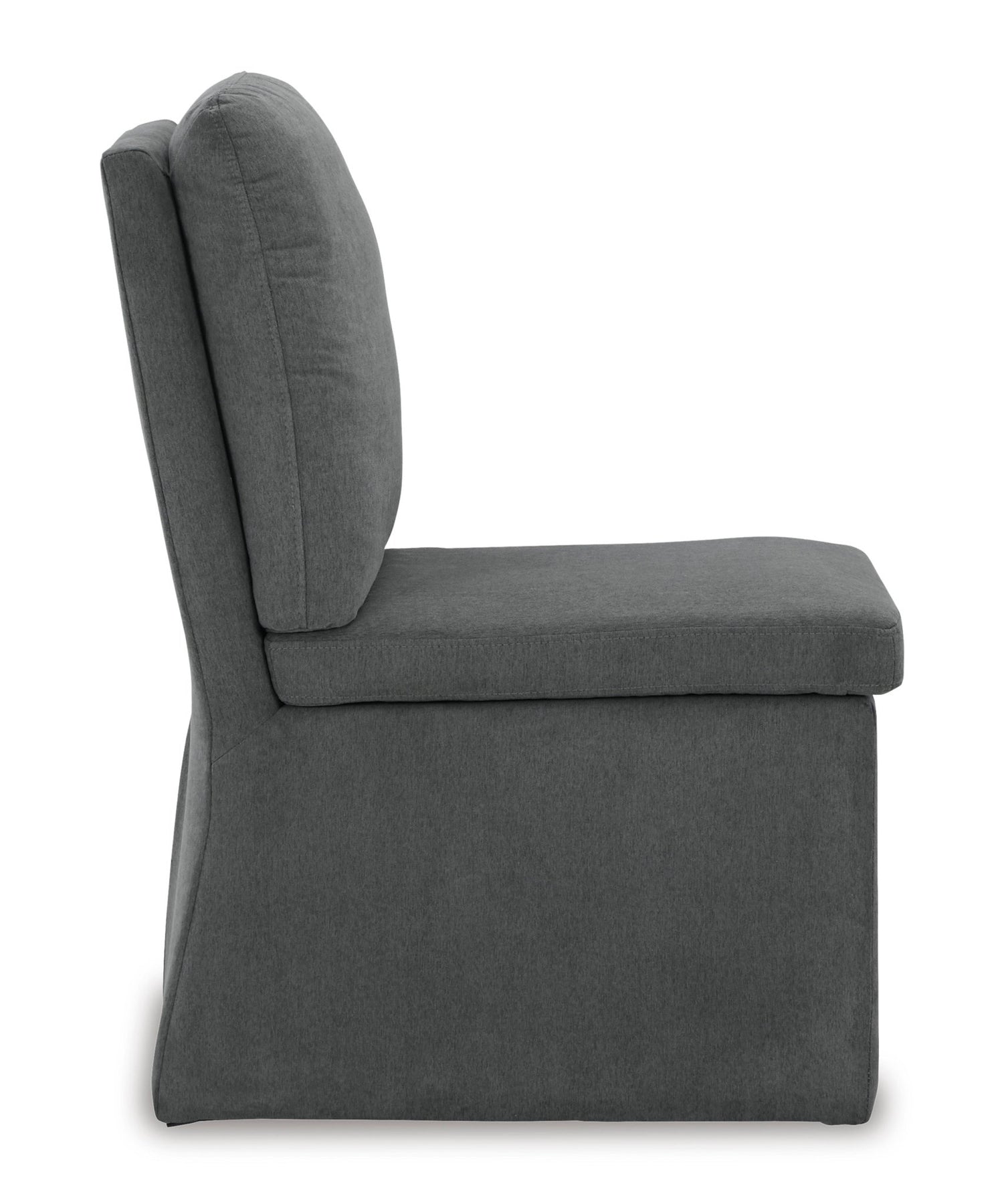 Enjoy home-cooked meals in style on the Krystanza urban contemporary dining chair. Add it to a dining table or use as extra seating for impromptu entertaining.. Covered in an oatmeal colored woven polyester fabric with a comfortably cushioned seat and back, this chair features a fully upholstered skirt, a pleated back and casters for easy mobility. It’s designed for modern tastes with an urban vibe.