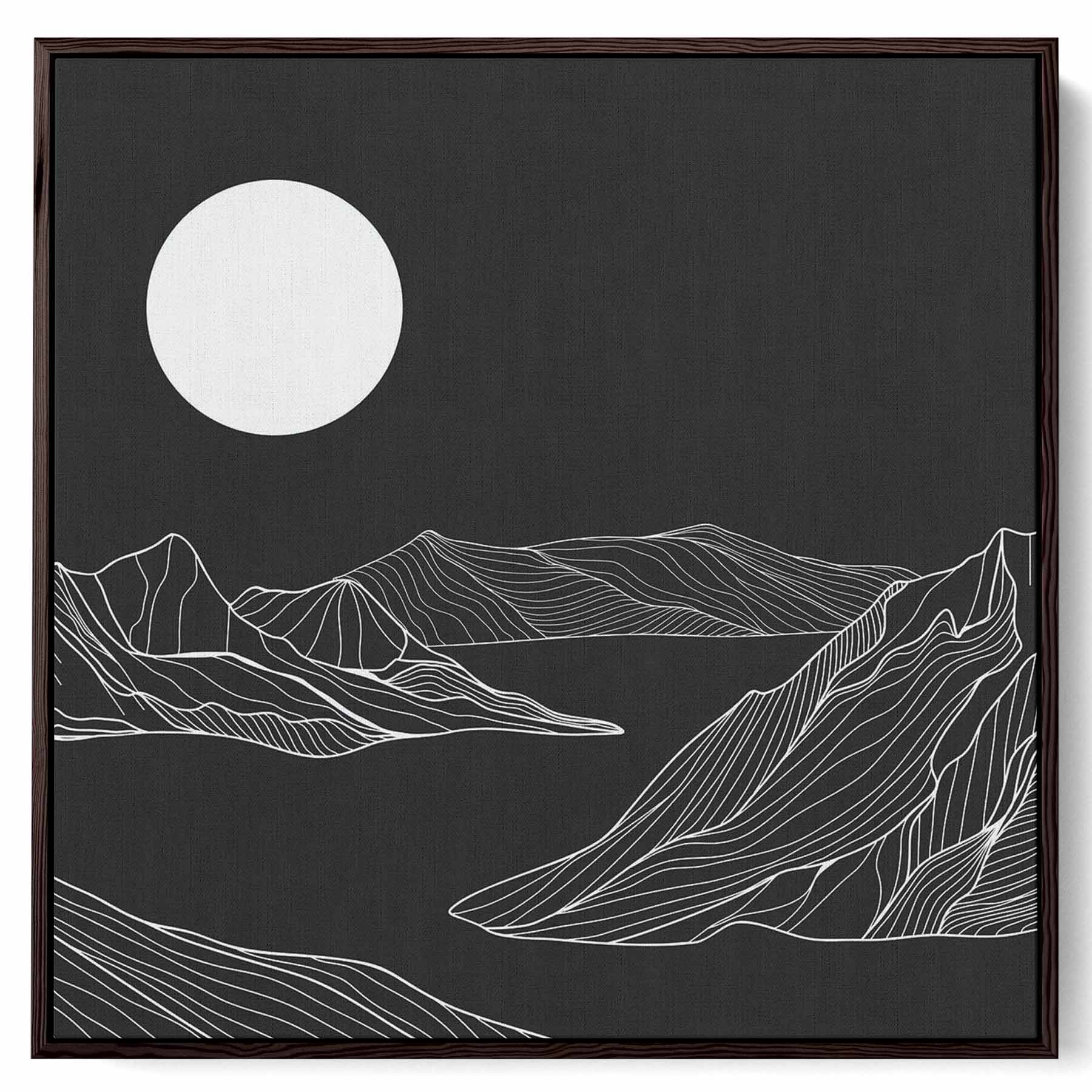 Square Canvas Wall Art Stretched Over Wooden Frame with Brown Floating Frame and Flowers Abstract Painting