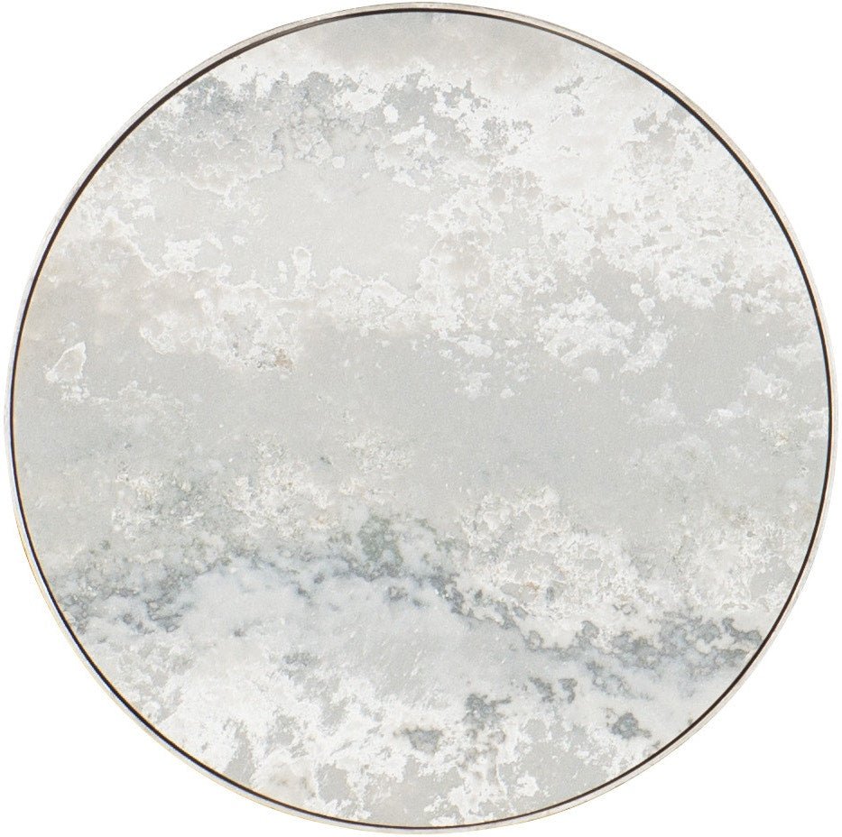 Uplift your interiors with the artistic and airy Lapilli Martini Table by your chairside. In a compact footprint, the Lapilli is crafted of metal with a stone veneer top. The center of the base has a square motif, leading to four flared legs, all finished in a light silver metallic tone with distressed texture applied for tactile appeal.