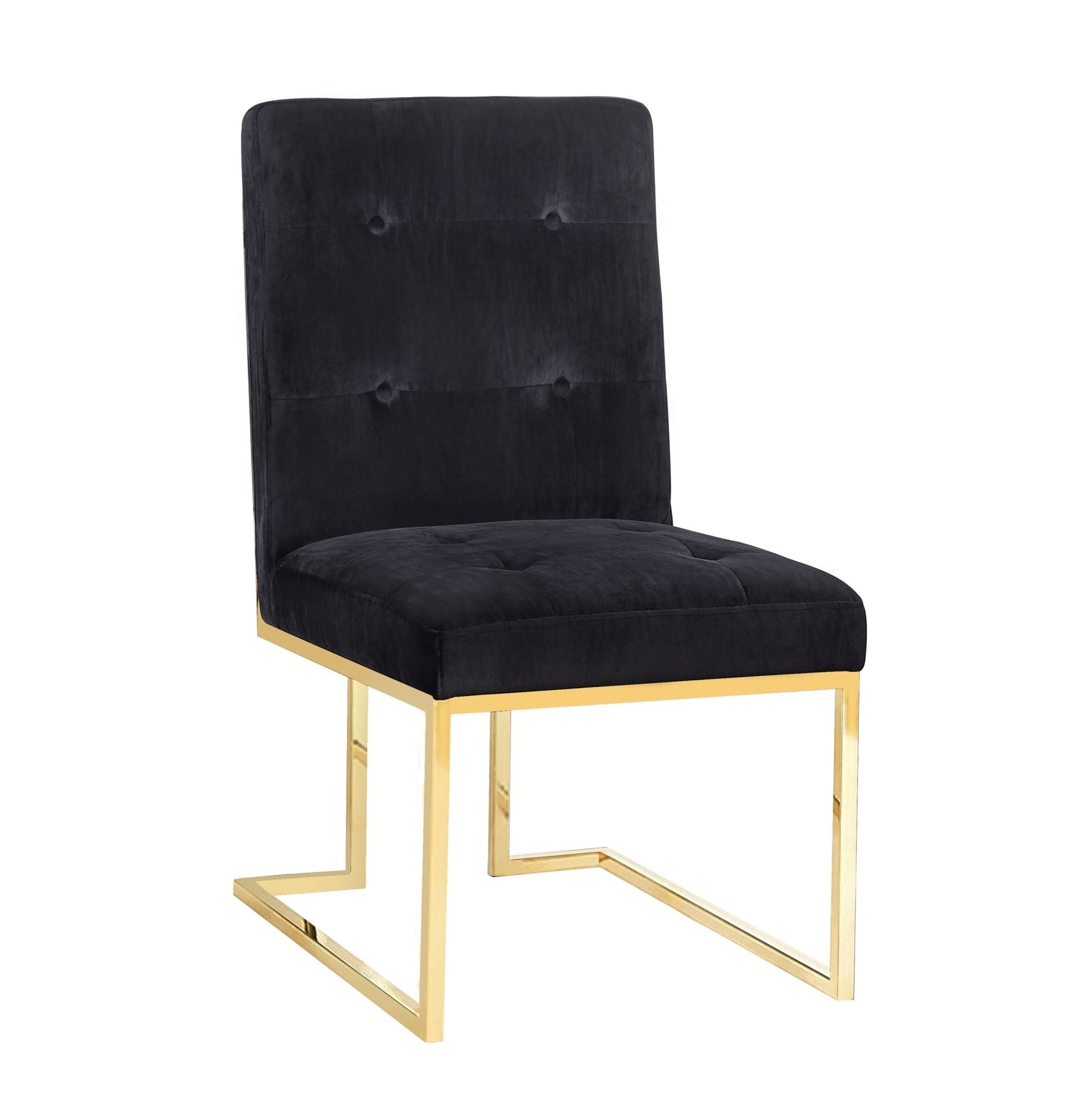Pull the Akiko side chair up to your dining room or kitchen table. The Hollywood glam style makes it perfect for an elegant entertaining ensemble or a casual weeknight meal. The velvet upholstery embellished with tufting and available in multiple color options, and the gold legs with a glossy finish, pair together for the ultimate side chair.