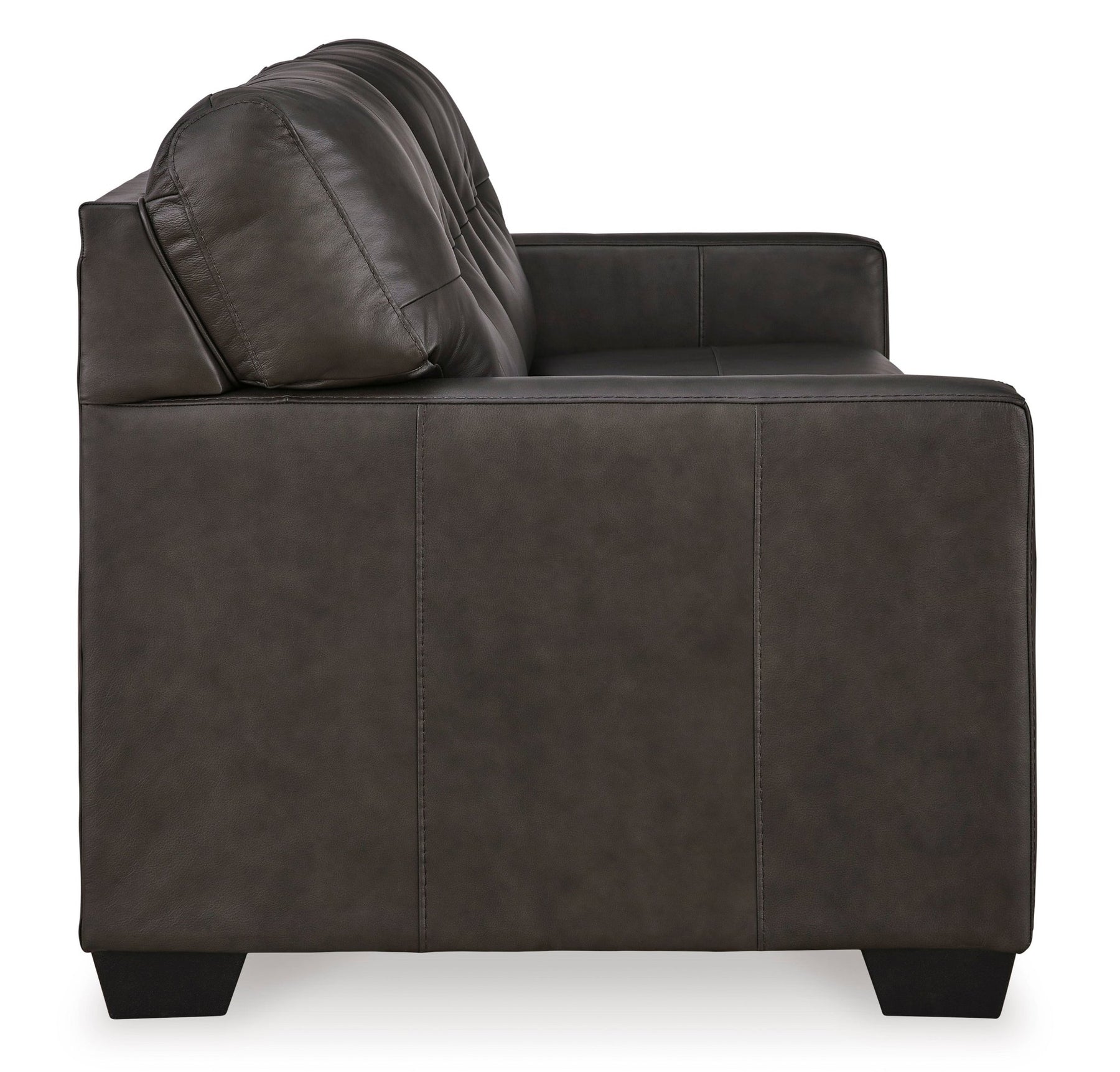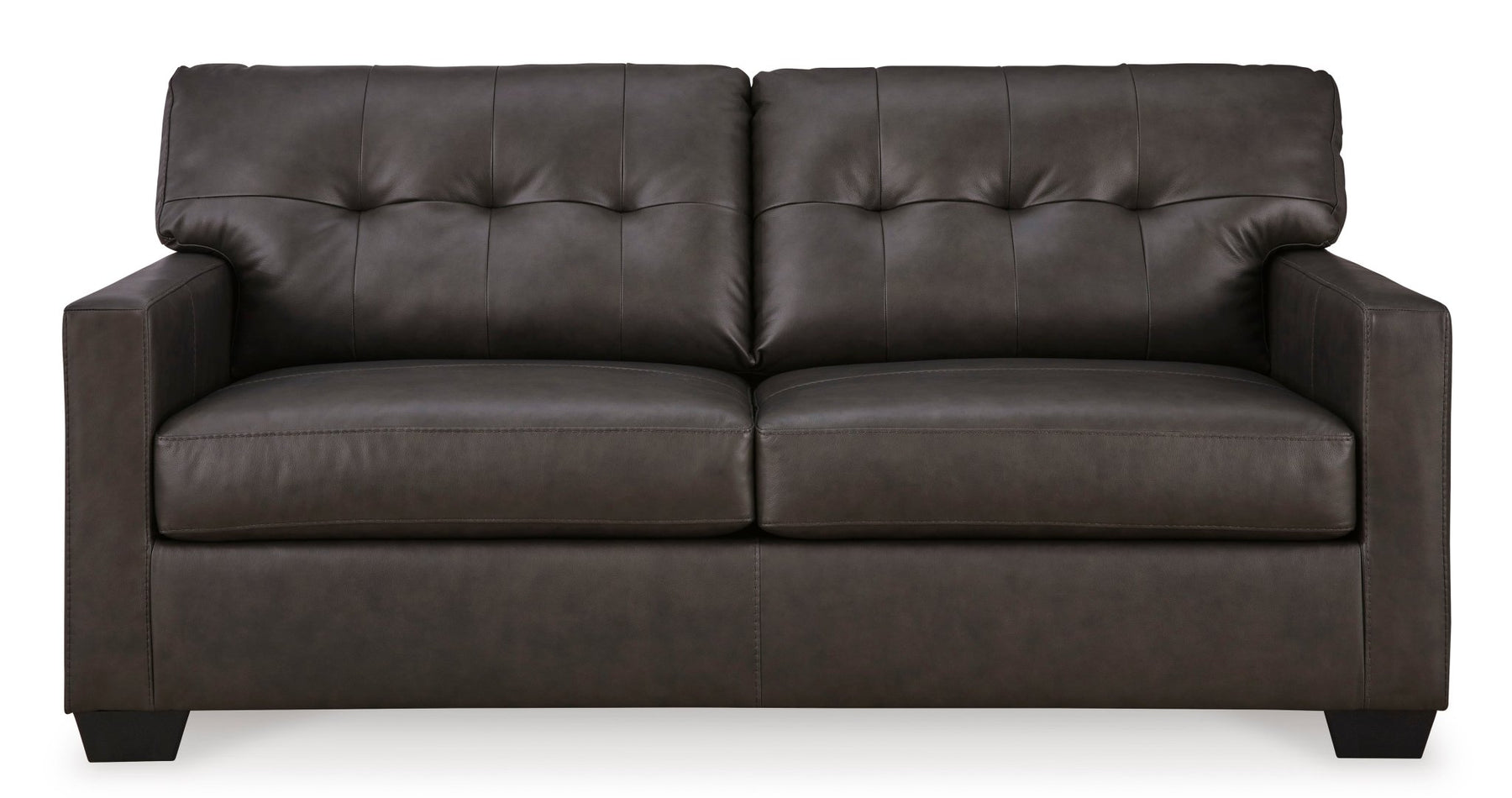 Corner-blocked frame;Loose seat and attached back cushions;Genuine leather typically covers inside areas such as the back, seat and arm cushions; skillfully matched faux leather covers the remaining areas;Pigmented corrective grain leather with slight embossing and a light contrast spray effect to add more depth;Due to its natural origin, real leather can show individual characteristics such as healed scars, growth marks, grain variation and shade variation;Natural variations make each hide unique and do not detract from the wearing qualities of leather;Exposed feet with faux wood finish;Platform foundation system resists sagging 3x better than spring system after 20,000 testing cycles by providing more even support;Smooth platform foundation maintains tight, wrinkle-free look without dips or sags that can occur over time with sinuous spring foundations