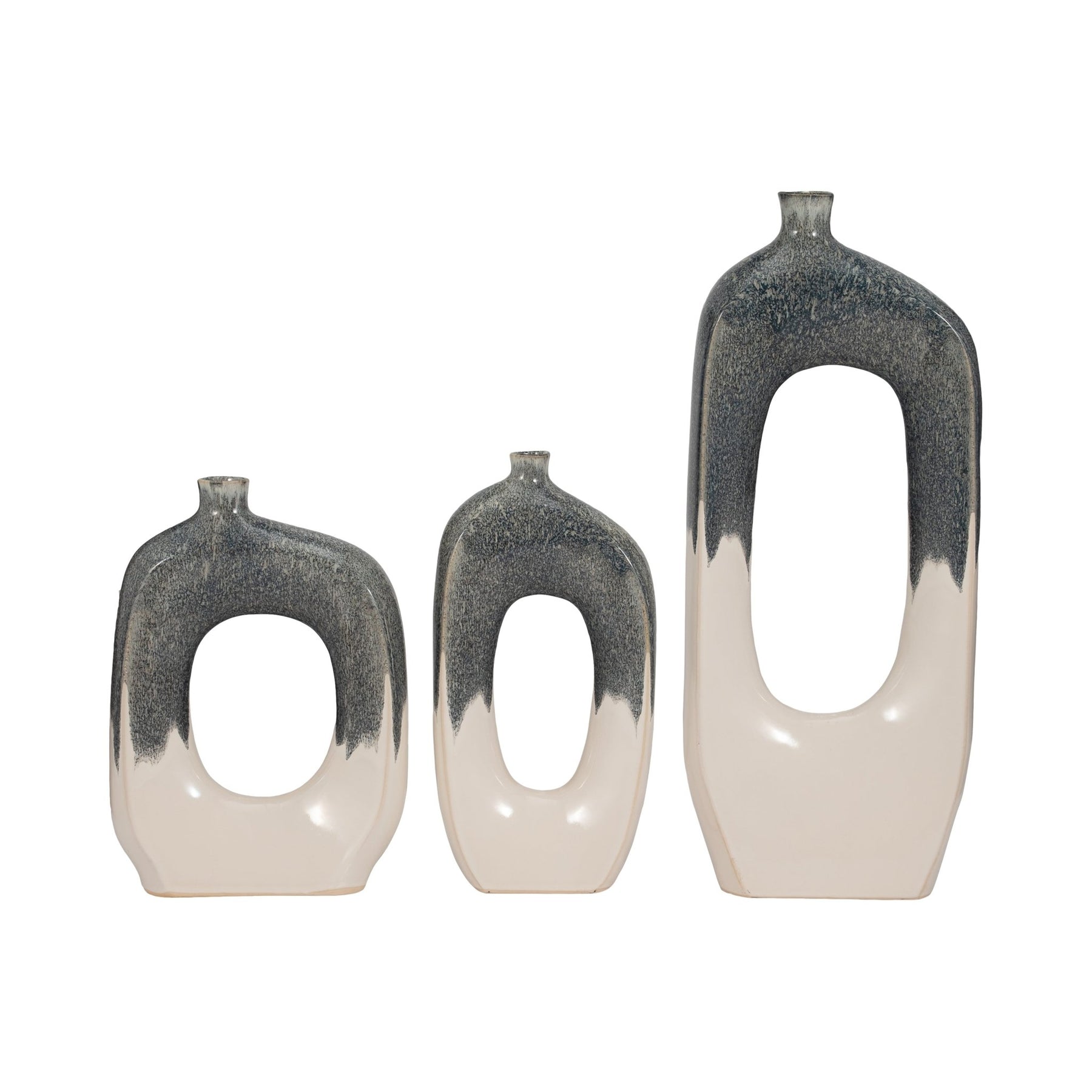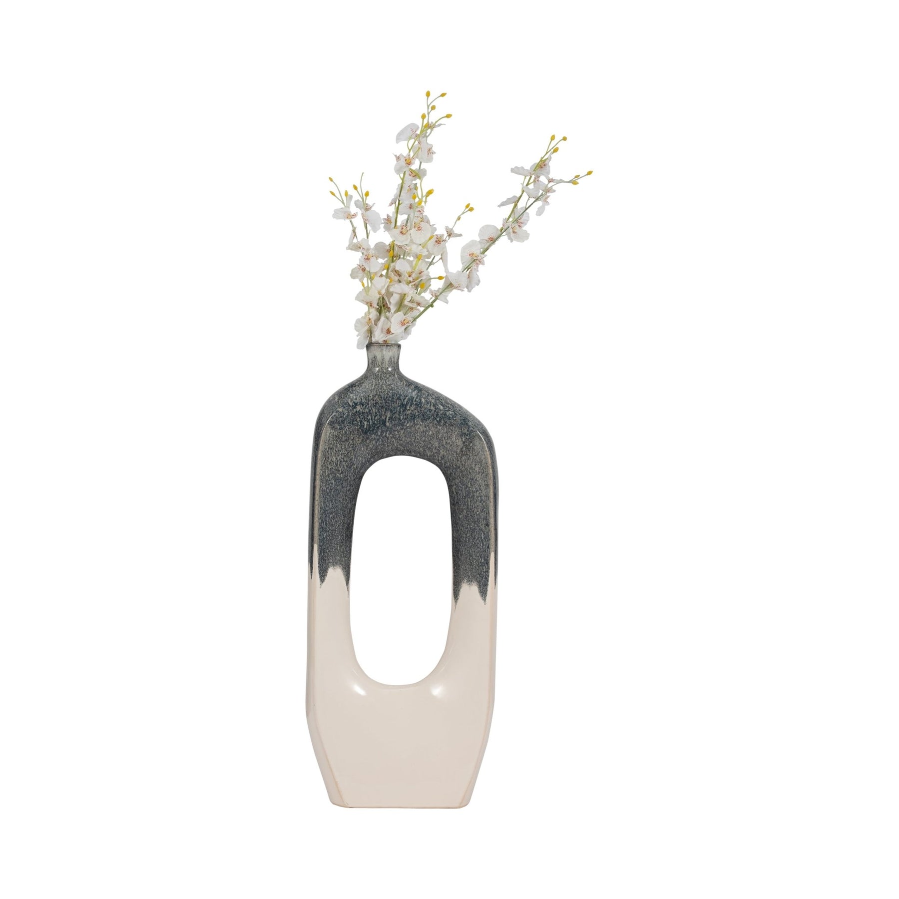 CER, 26" CURVY OPEN CUT-OUT VASE, BLUE/WHITE