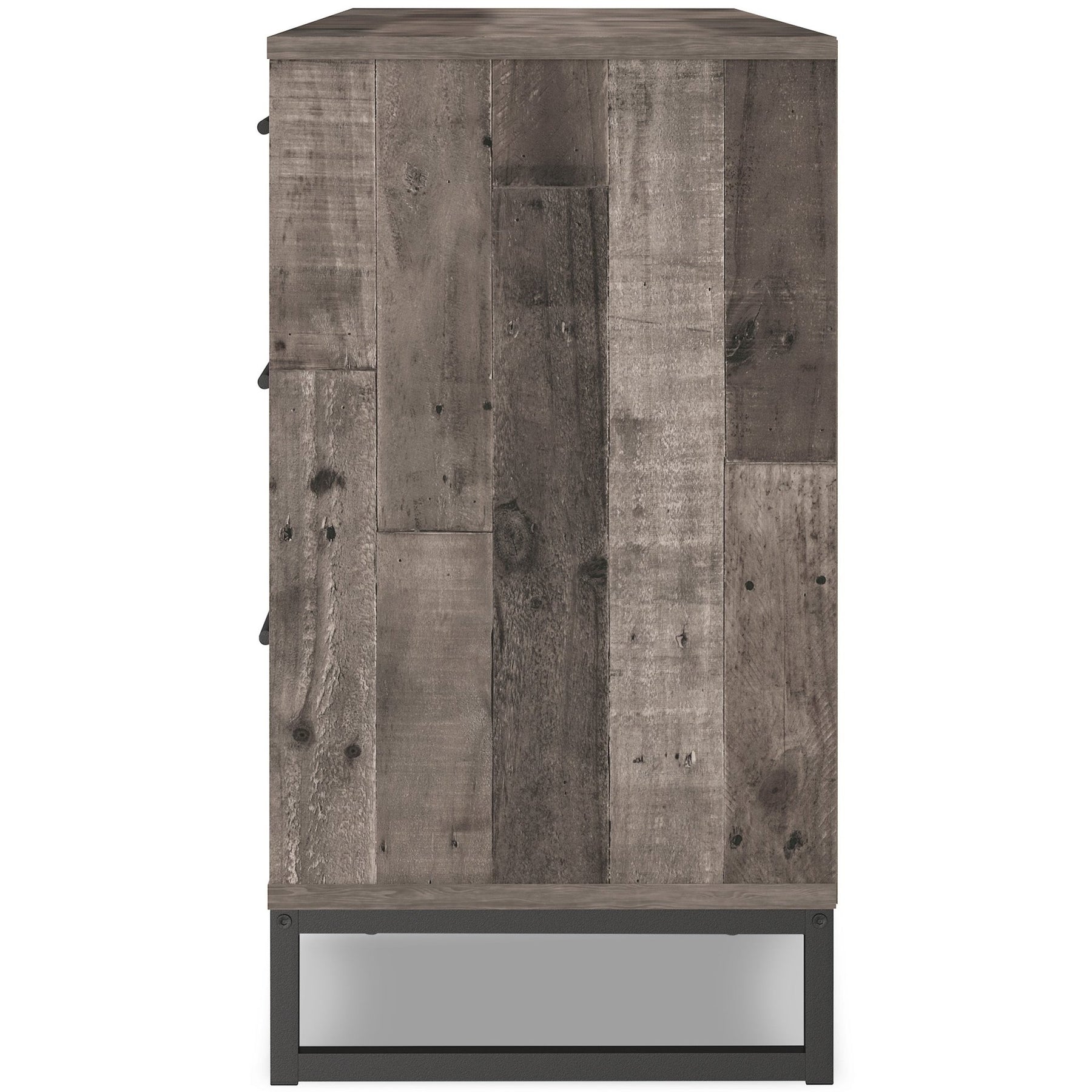 Streamlined design and a stunning finish come together in one simply extraordinary piece. The Neilsville dresser is sure to impress with six smooth-operating drawers, canted metal legs and a rustic butcher block finish over replicated pine grain texture. Its mid-century style is a nod to the past, while the updated finish keeps it solidly in the present.