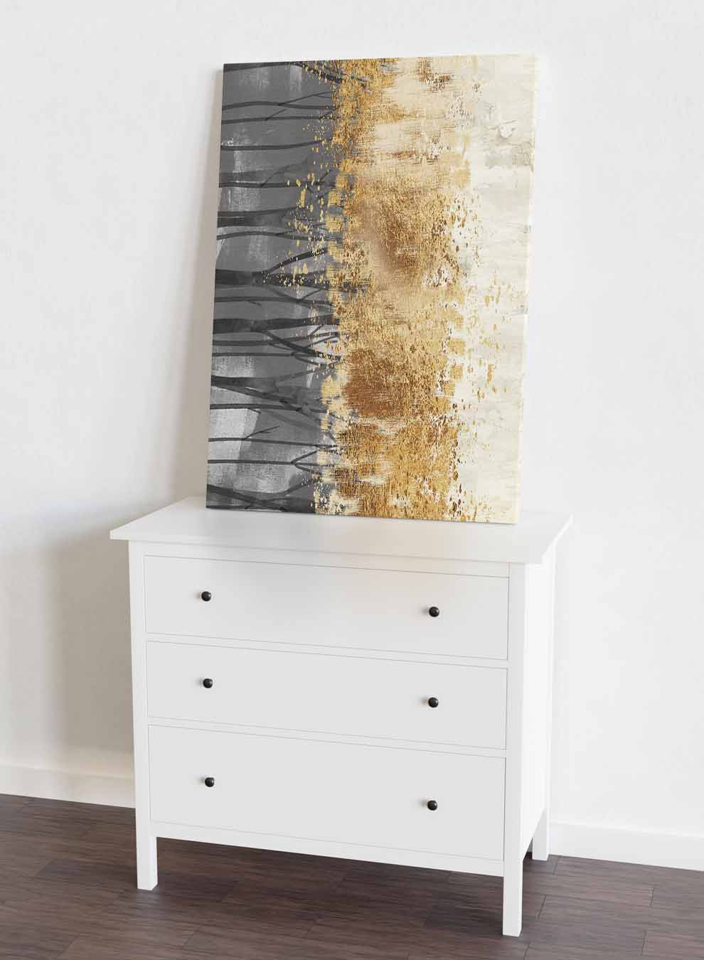 Canvas Wall Art Stretched Over Wooden Frame with Gold Floating Frame