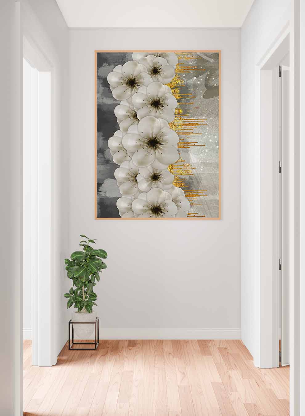 Canvas Wall Art Stretched Over Wooden Frame with Gold Floating Frame