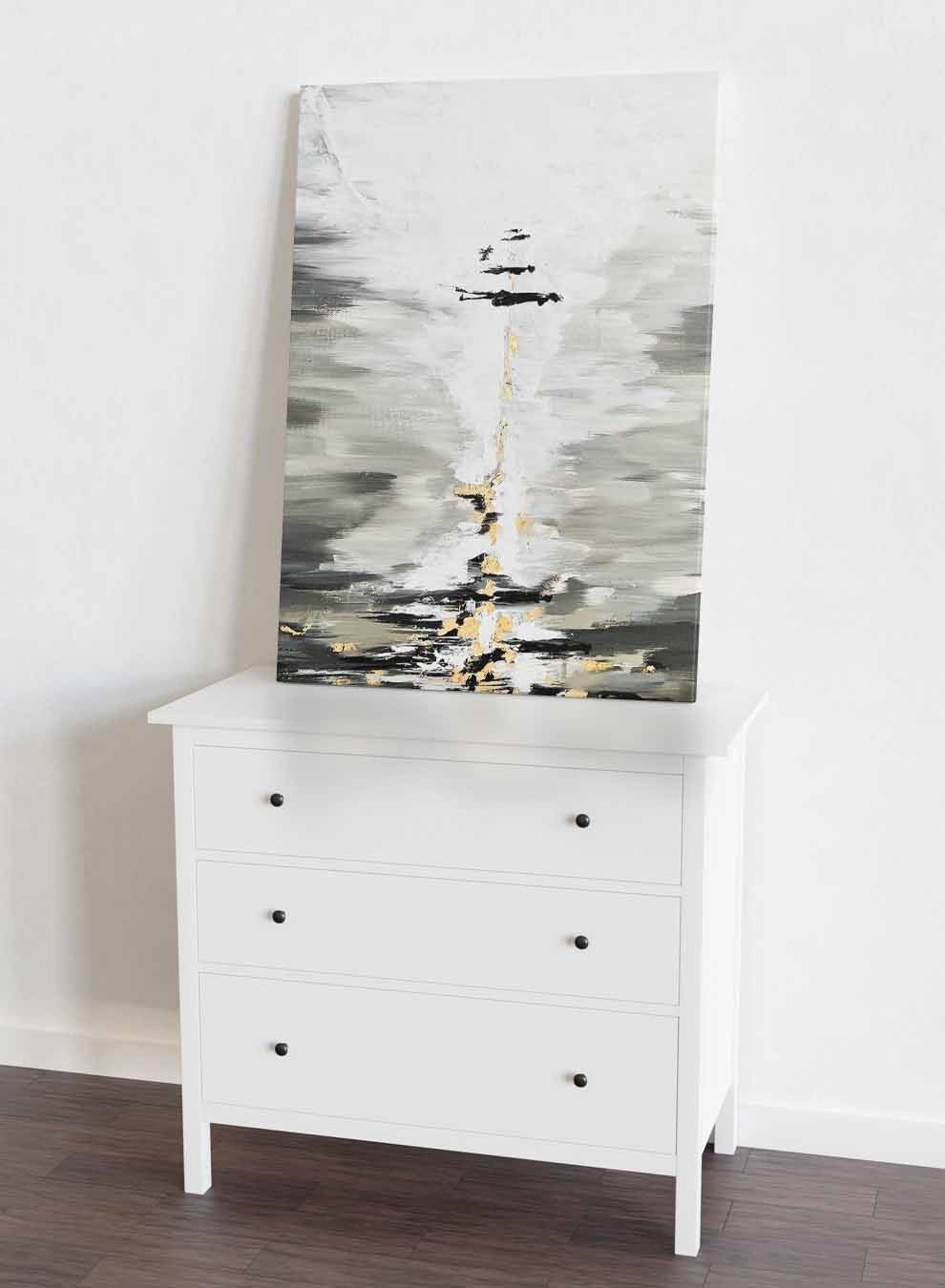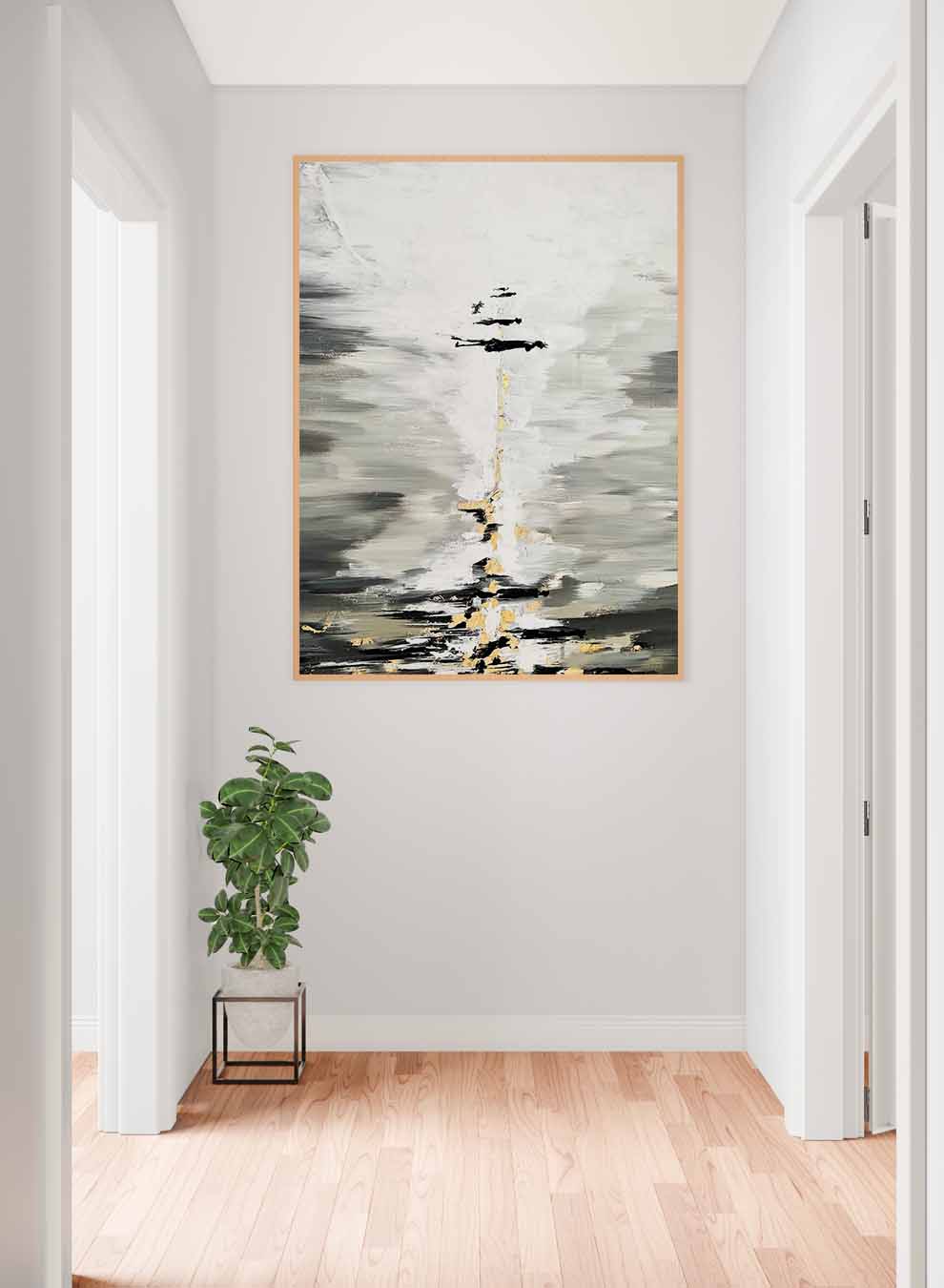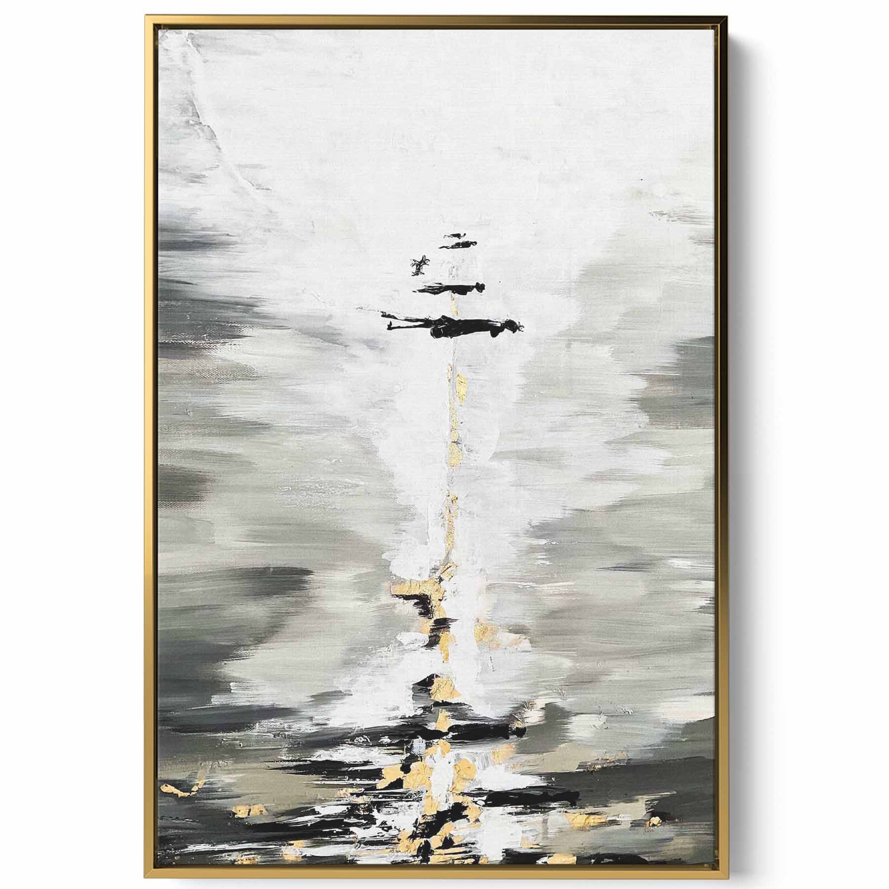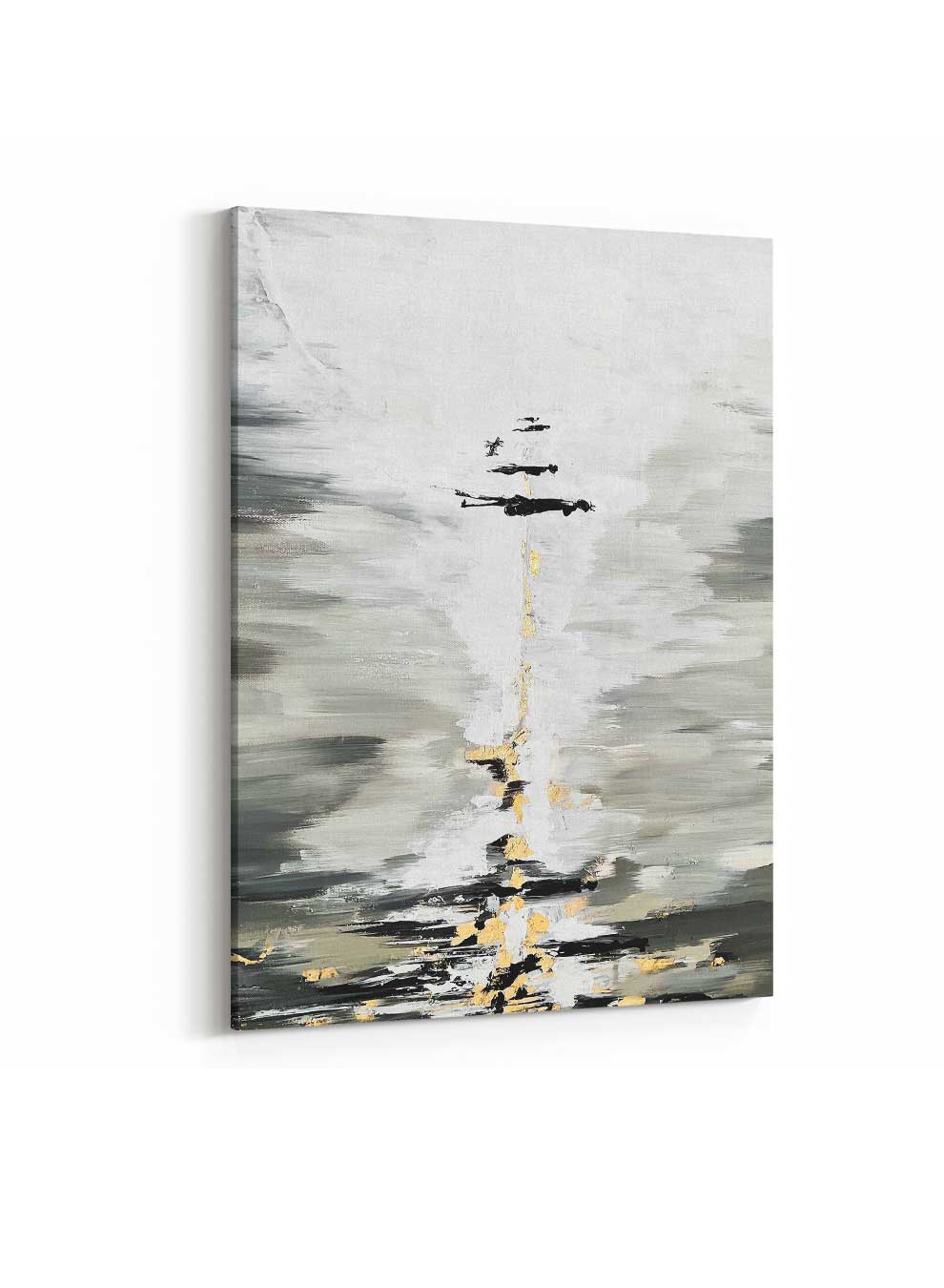 Canvas Wall Art Stretched Over Wooden Frame with Gold Floating Frame