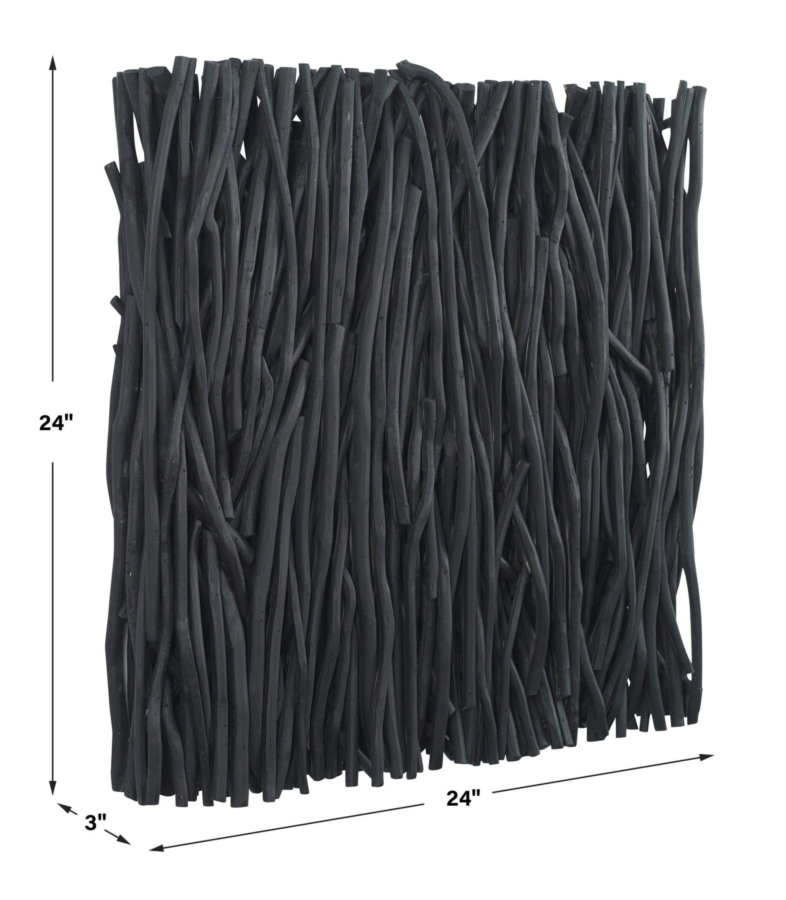 Gathered Teak Square Wood Wall Decor, Black - Al Rugaib Furniture