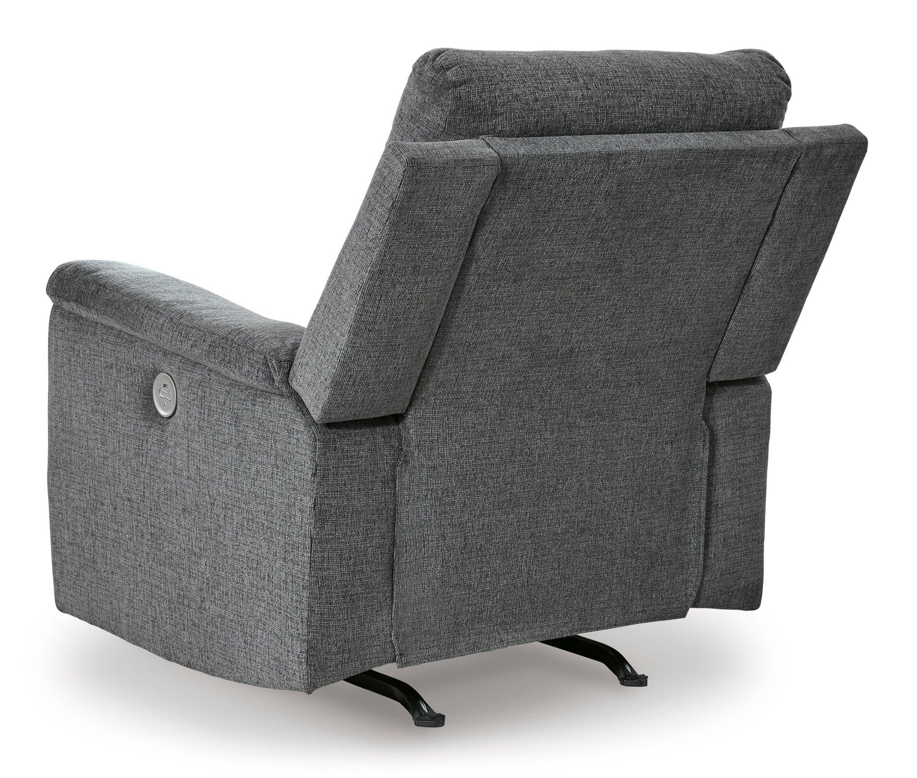 Fabric, Power Rocker Recliner, Light, One-touch power control with adjustable positions and zero-draw USB port;Zero-draw technology only consumes power when the USB receptacle is in use;Corner-blocked frame with metal reinforced seat;Attached cushions;High-resiliency foam cushions wrapped in thick poly fiber;Polyester micro chenille upholstery;Gentle rocking motion;Power cord included; UL Listed