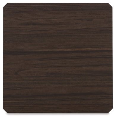 Includes coffee table and 2 end tables;Made with MDF substrates, decorative laminate and steel;Tabletop with dark brown replicated walnut wood grain finish;Tubular steel legs with plated goldtone finish;Adjustable levelers included;Assembly required