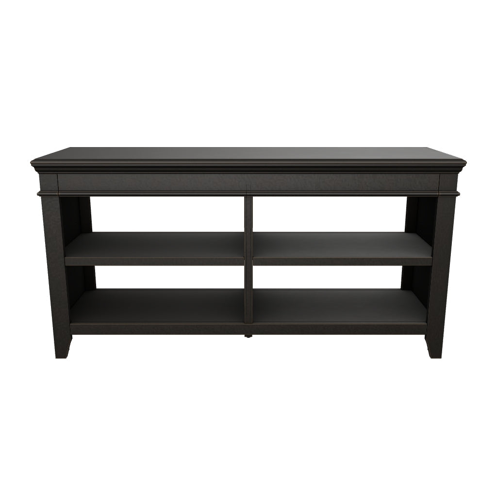 Make a style statement with the Beckincreek home office credenza. Its traditional design is updated with an on-trend vintage black finish. The credenza's open storage and adjustable shelving add up to a well-organized workspace.
