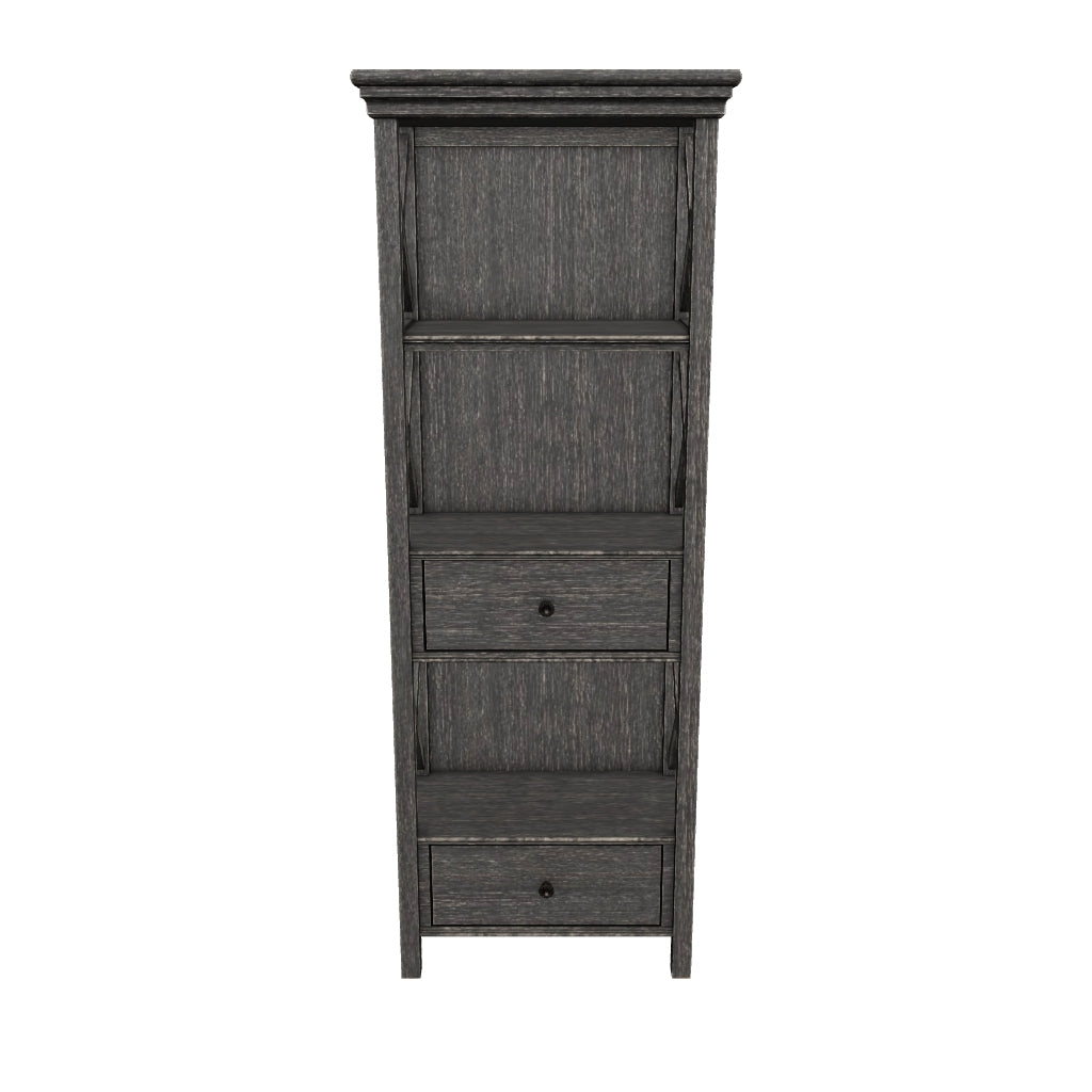 Invite your family into the heart of your home with the Tyler Creek dining room display cabinet. Black finish is beautifully textured. Put your dinnerware and decor on display on the top shelf. Store away essentials inside the roomy drawers. X-shape design down the sides makes it all around eye-catching. This is trend-right urban farmhouse style.