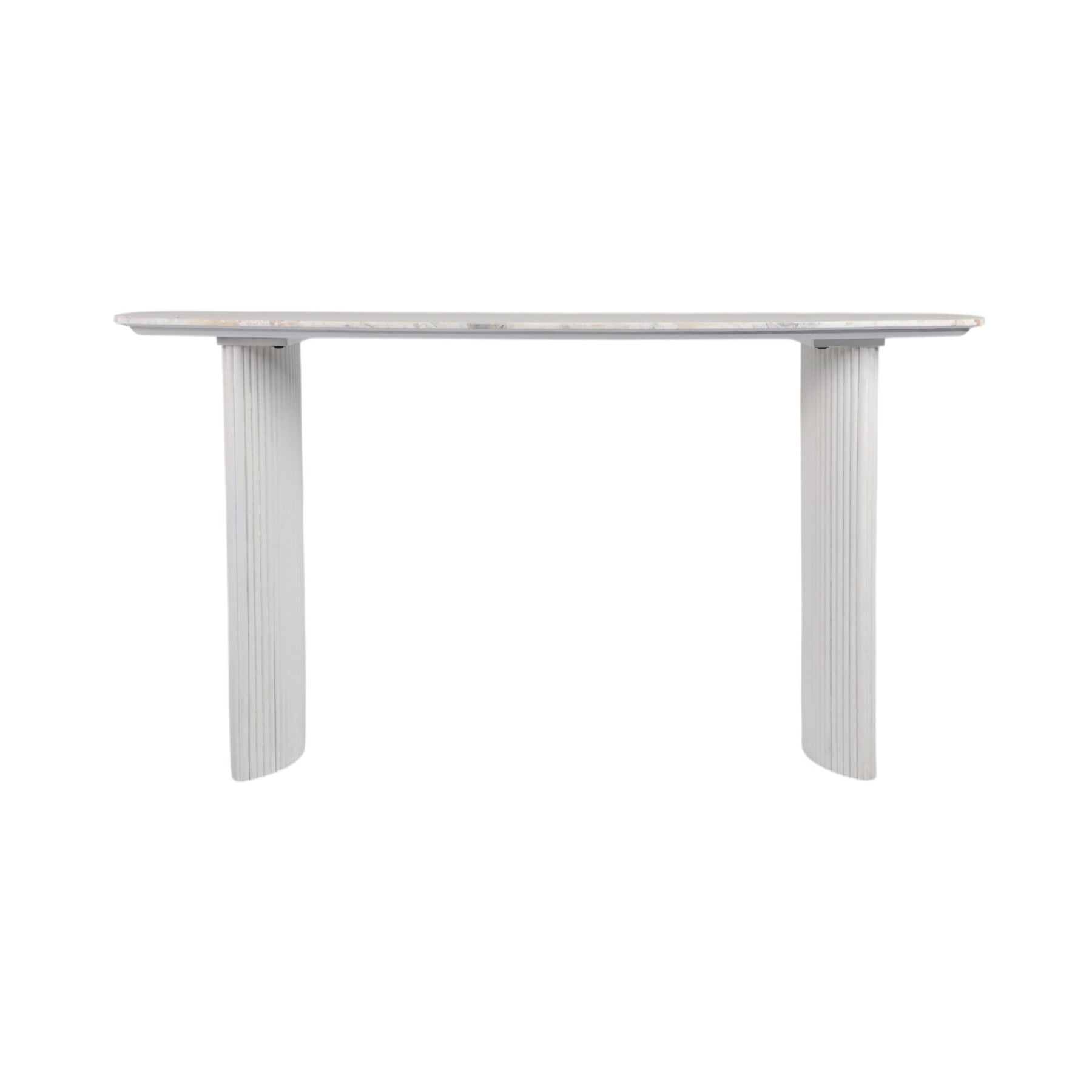 60"Catalina Travertine&Fluted Wood Console Tble/Kd