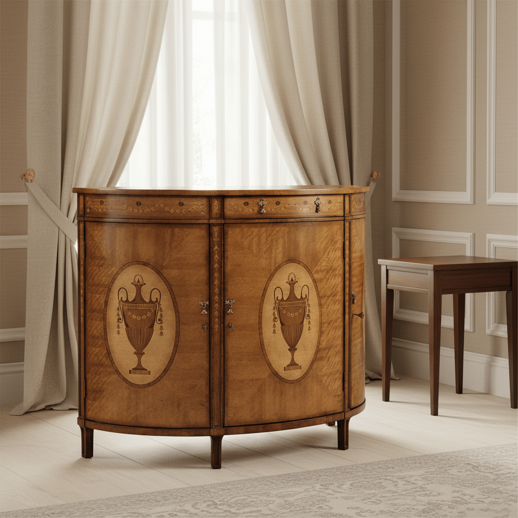 Versailles Collection - Adam Style Satinwood & Marquetry Demilune Cabinet