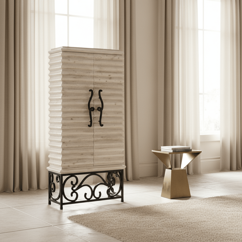 JC Edited - Artisan Collection - Limed Wood Wine Cabinet with Wrought Iron Base - Al Rugaib Furniture