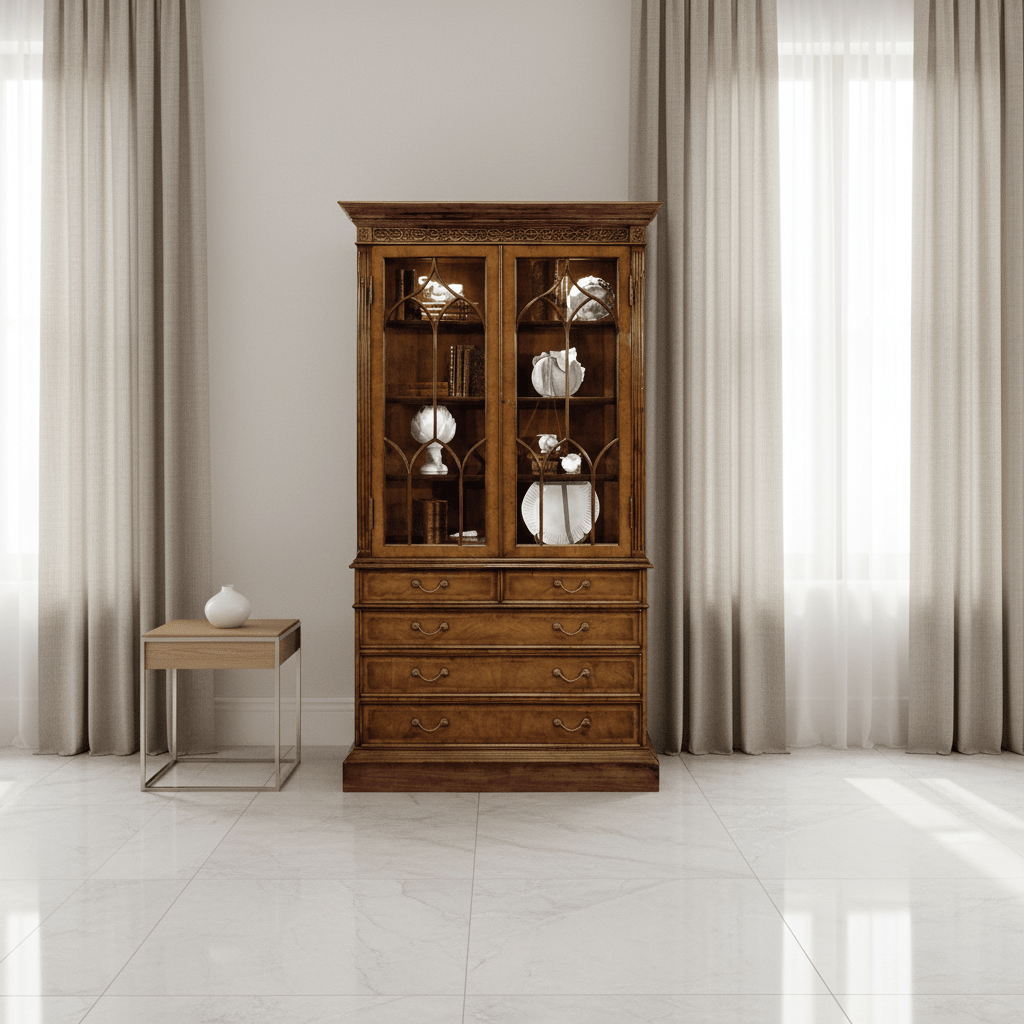 Windsor Collection - Walnut Glazed Display Cabinet with Drawers