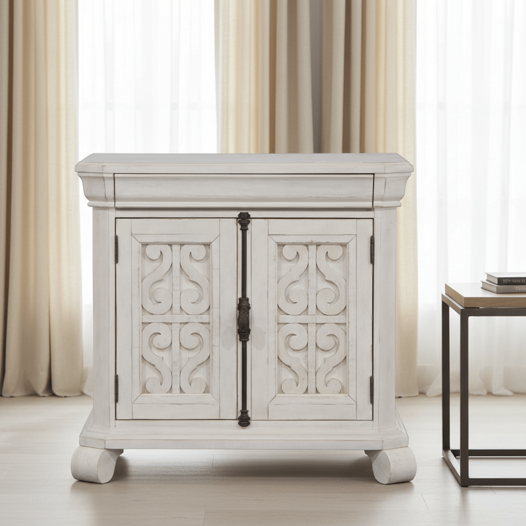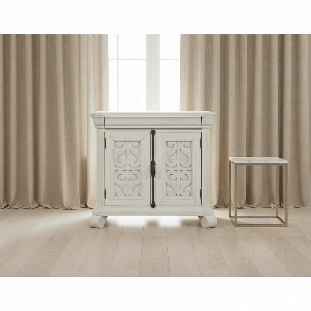 Dream big with the stylish Bronwyn bedroom collection. Its signature style is perfect for adding that wow factor to a bedroom. Crafted in an Alabaster finish accented by Antique Brass hardware with Pewter overlay, Bronwyn delivers true design versatility and can be paired with neutrals or bold color choices. Gorgeously interesting from every angle, it offers a look that’s timeless yet sophisticated. If your bedroom isn’t your favorite room in your home, it’s time to add the rich design character of Bronwyn.