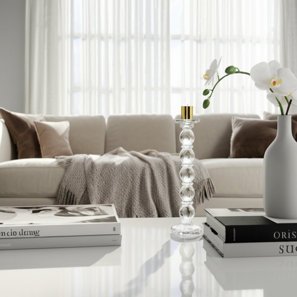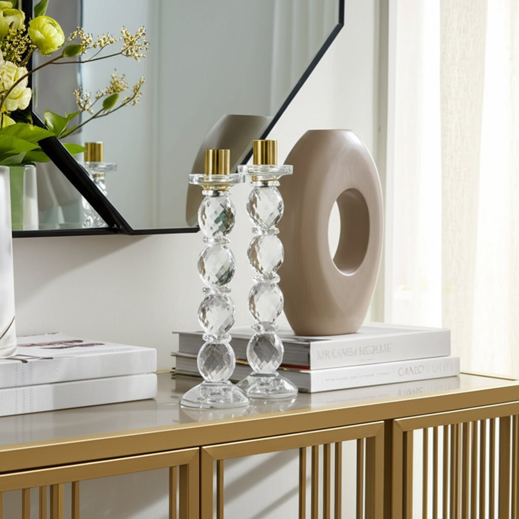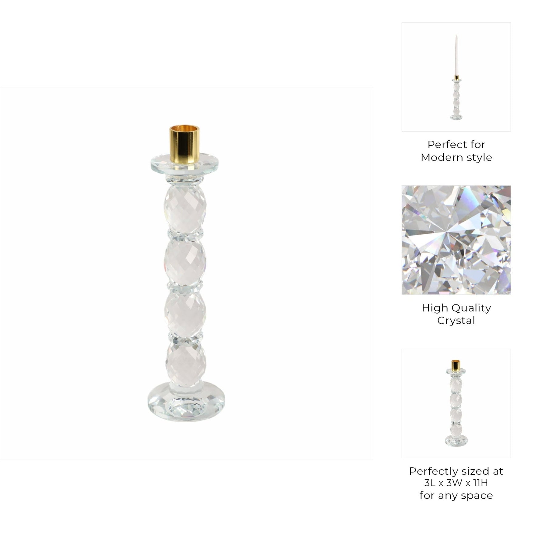 11" Etched Crystal Taper Holder, Clear/gold - Al Rugaib Furniture