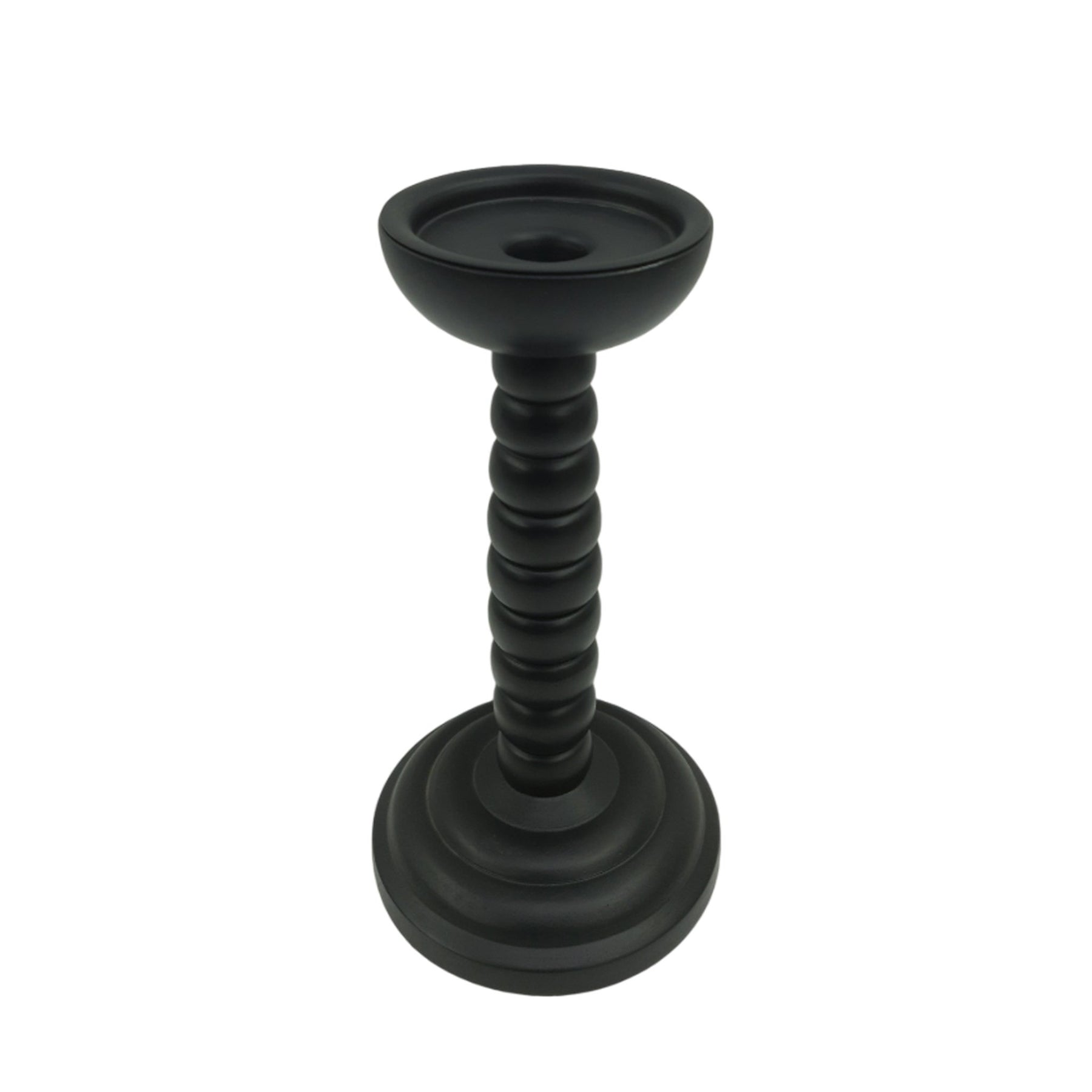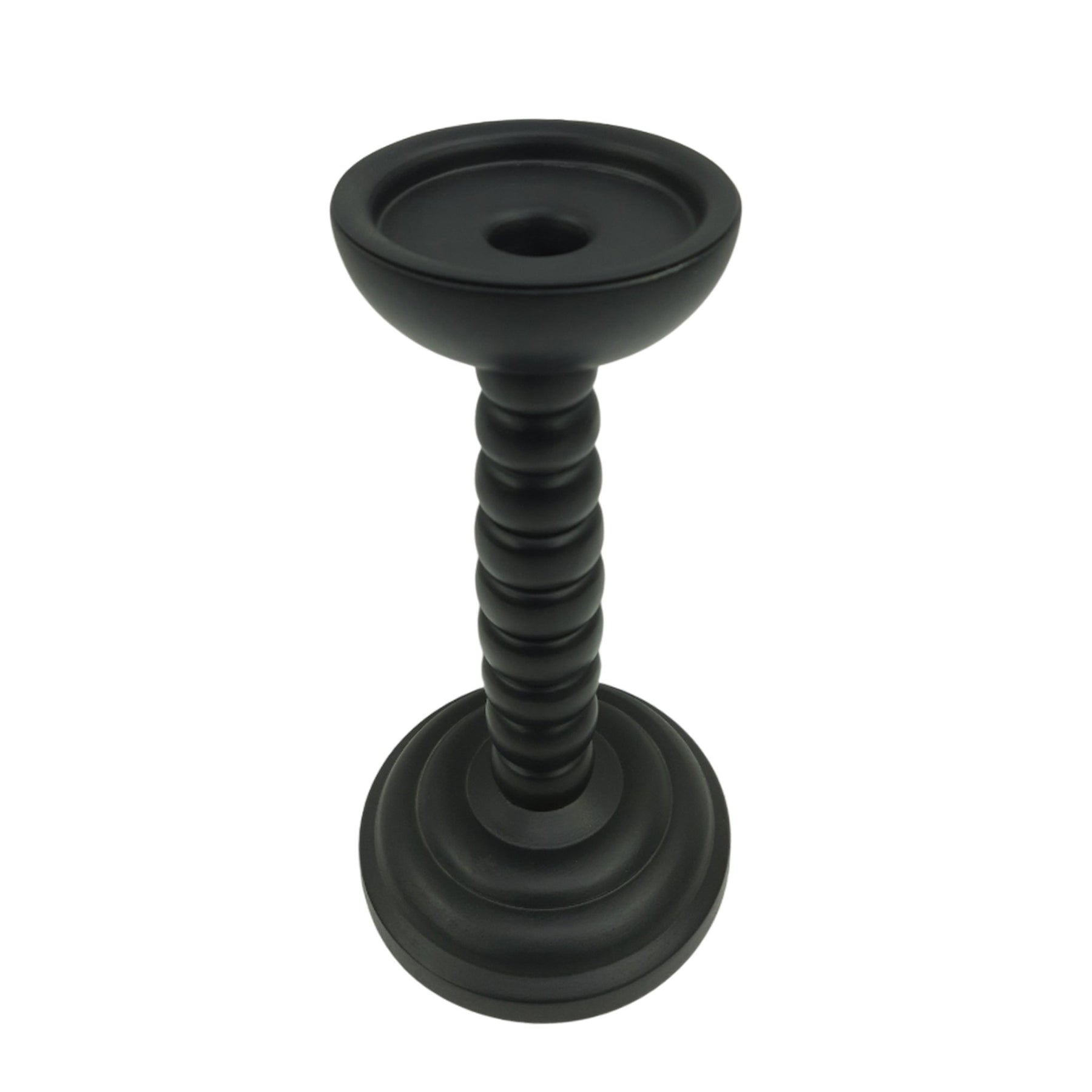 12x5" Stacked Pillar & Taper Holder, Black - Al Rugaib Furniture