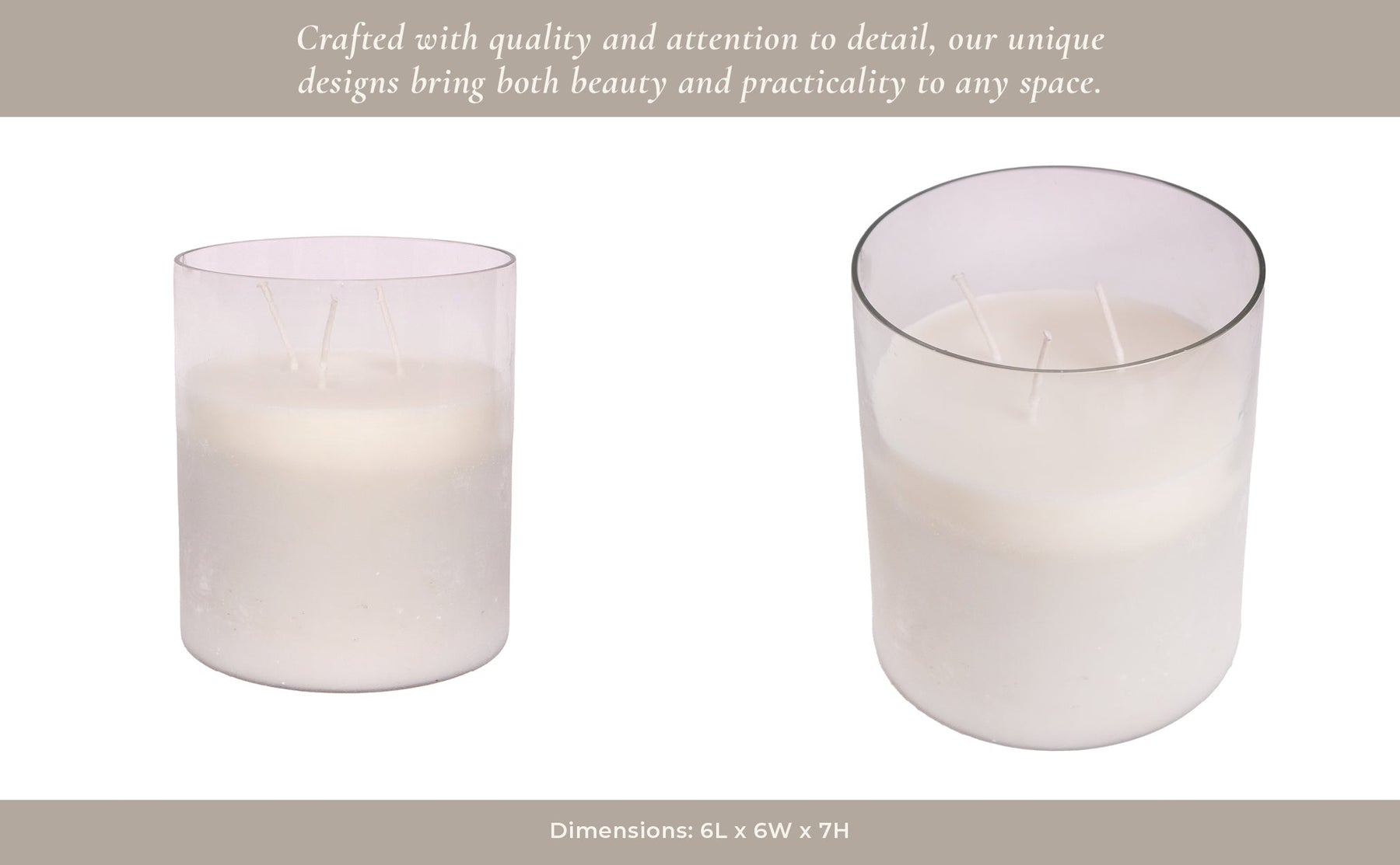 7x6" 65 Oz Jasmine Frosted Glass Candle, Clear - Al Rugaib Furniture