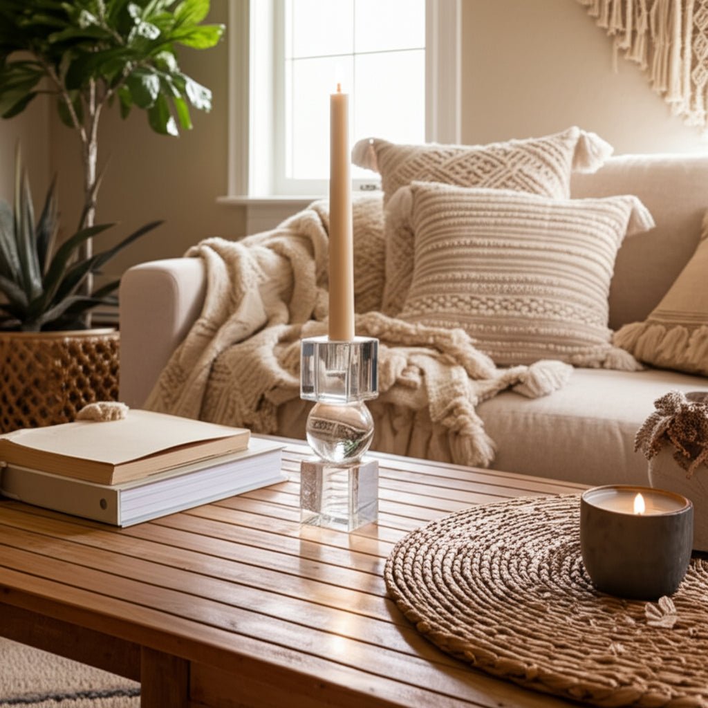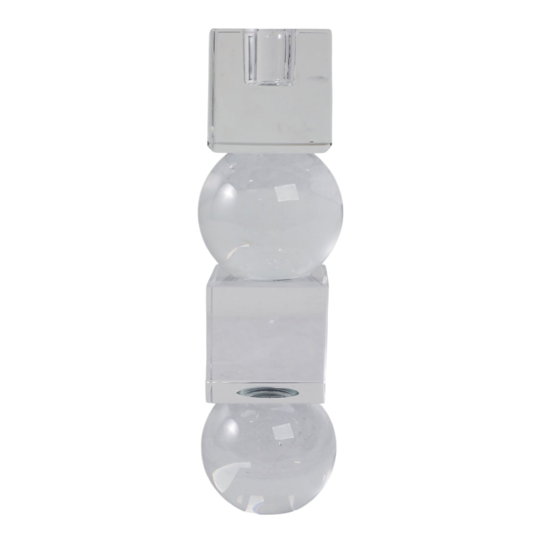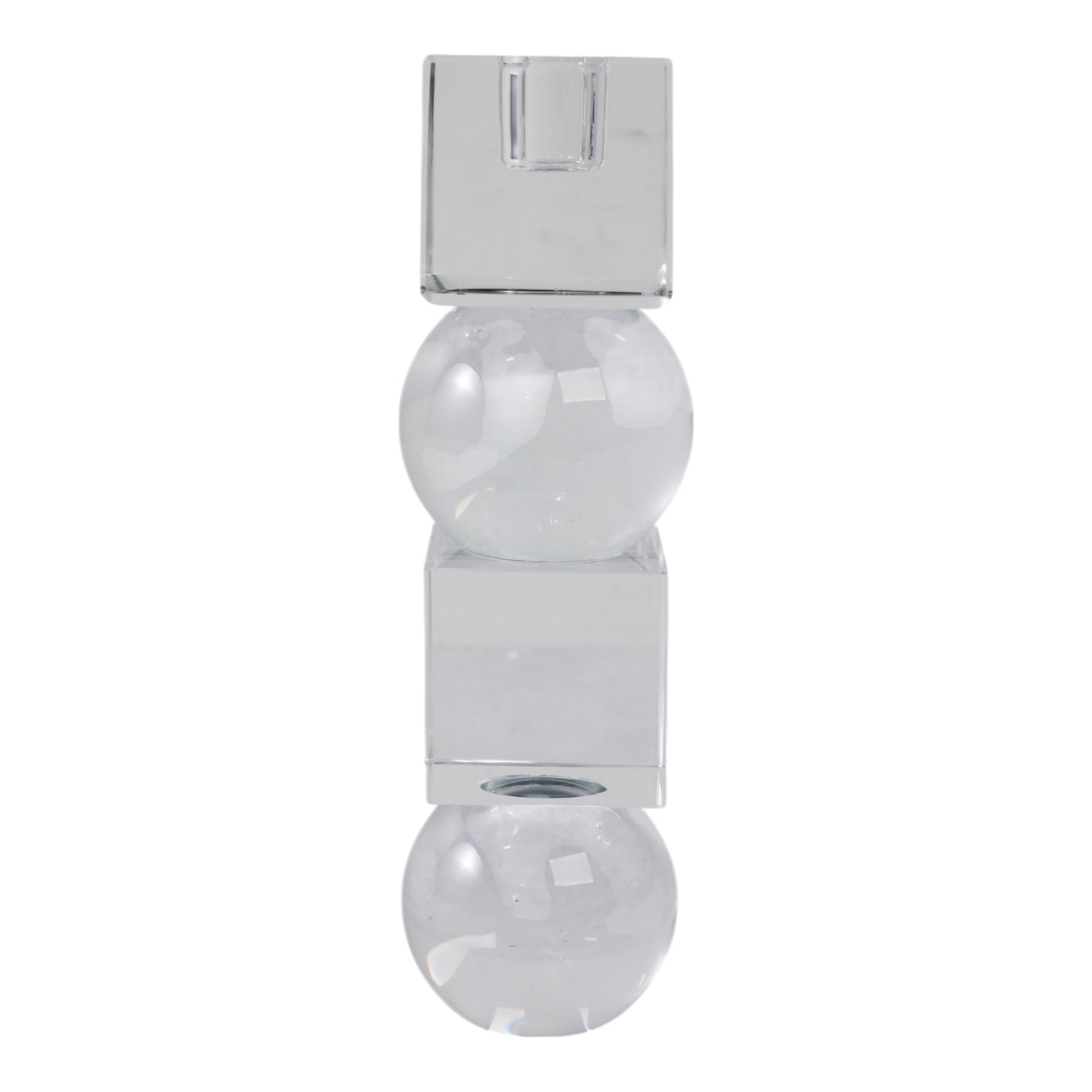 8" Crystal Orbs & Blocks Taper Candleholder, Clear