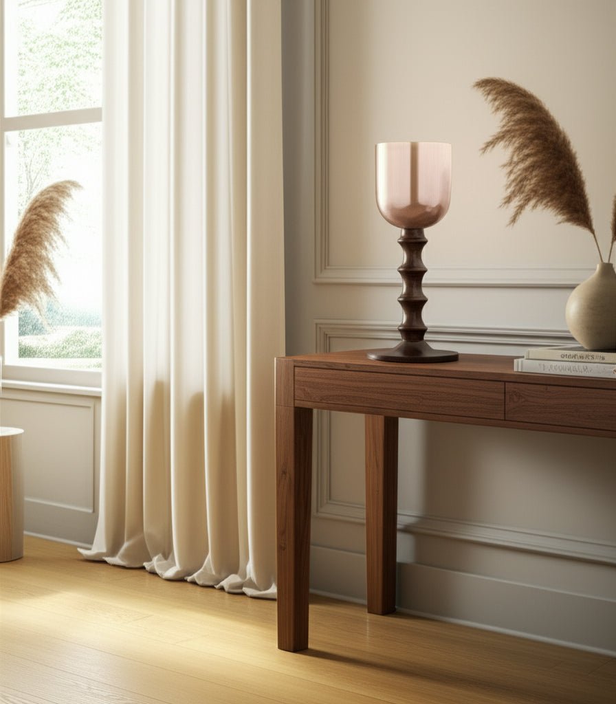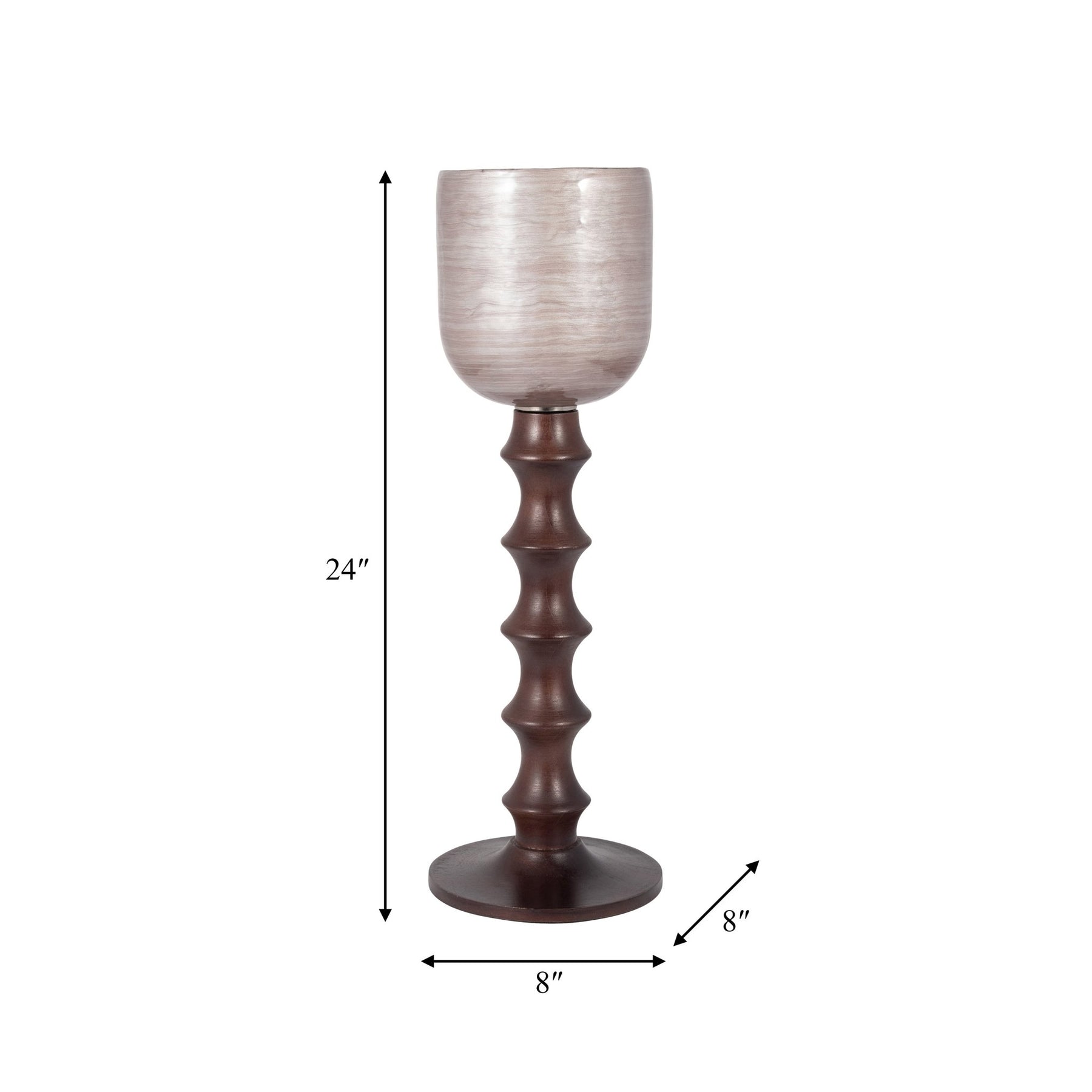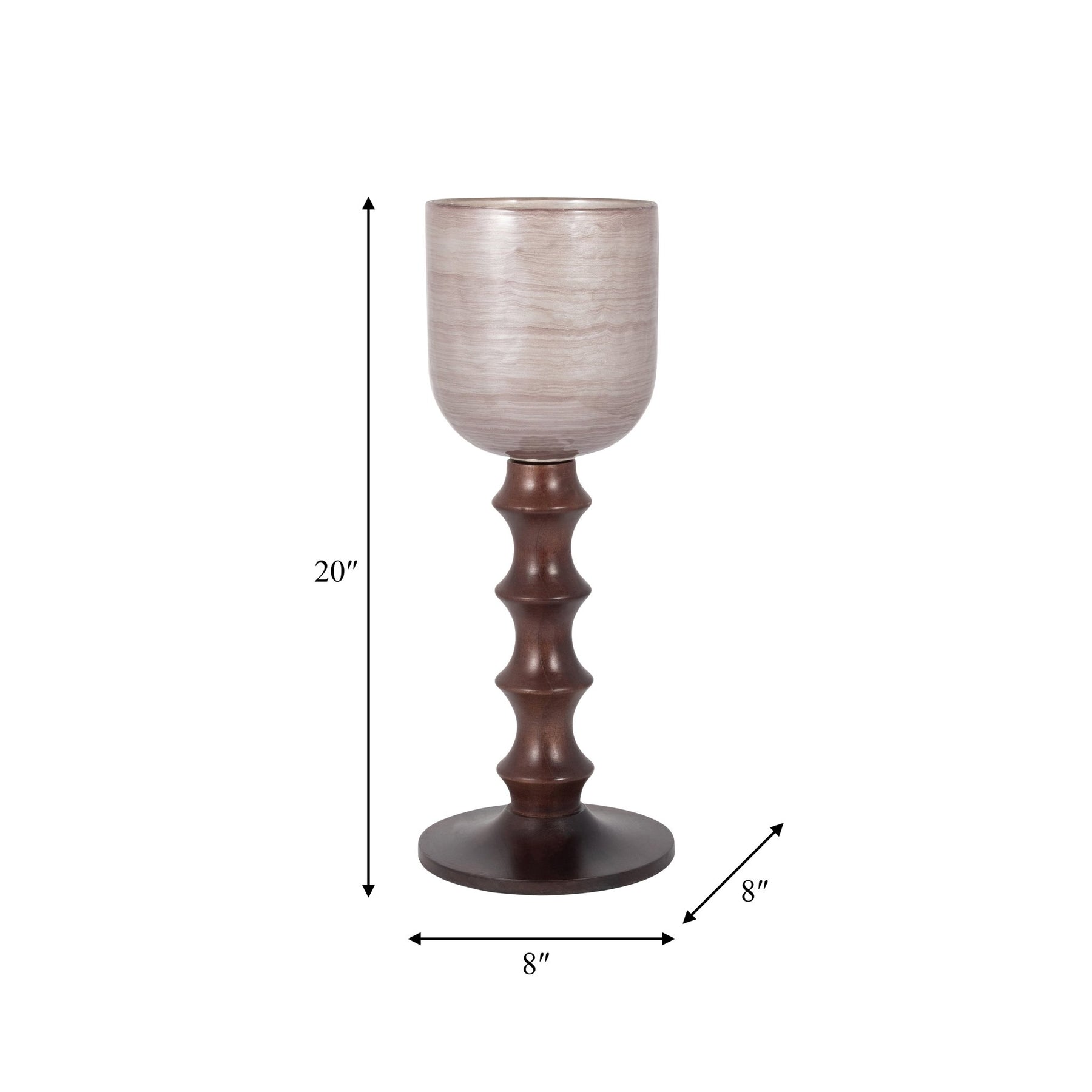 GLASS, WOODEN BASE HURRICAN, BLUSHCandle Holders
