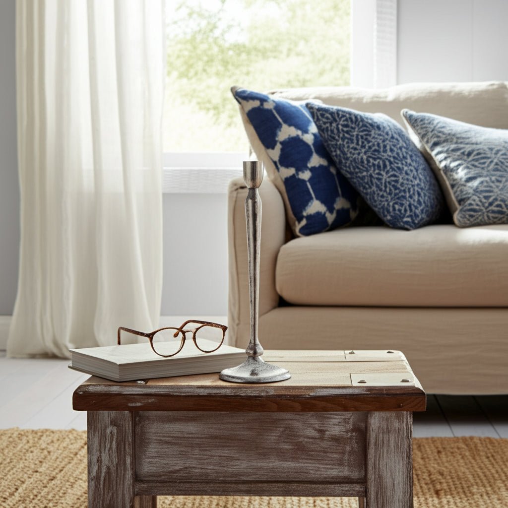 12x4" Traditional Cast Iron Taper Holder, Silver