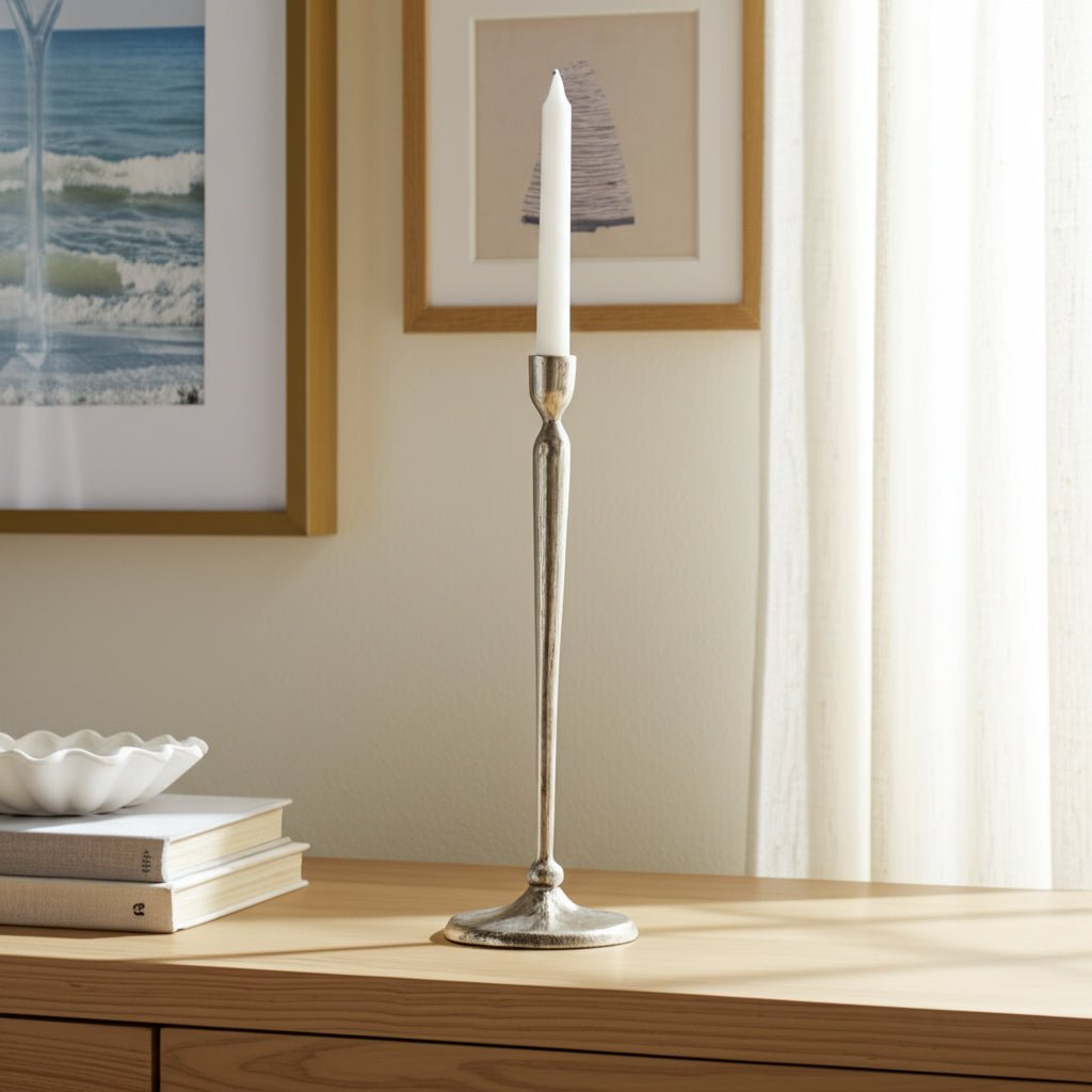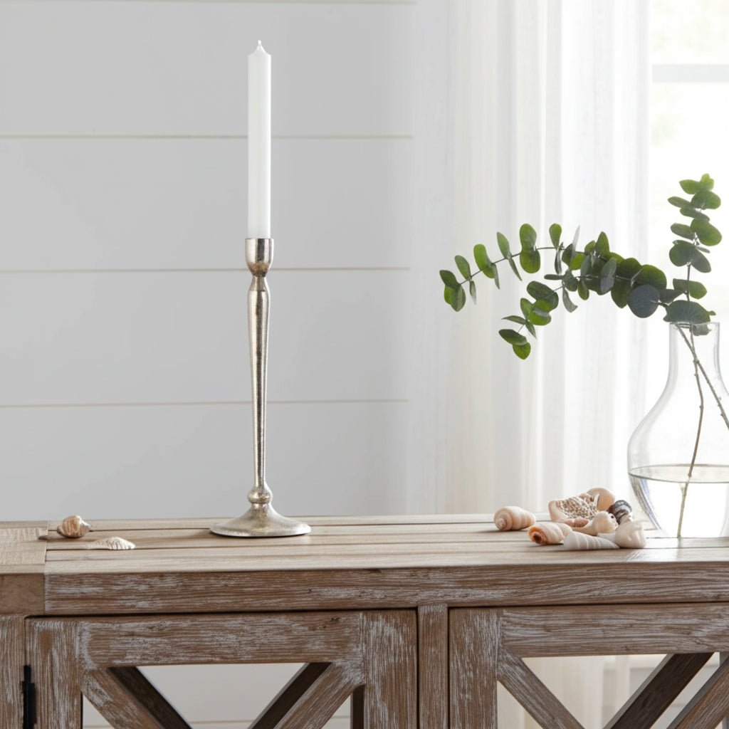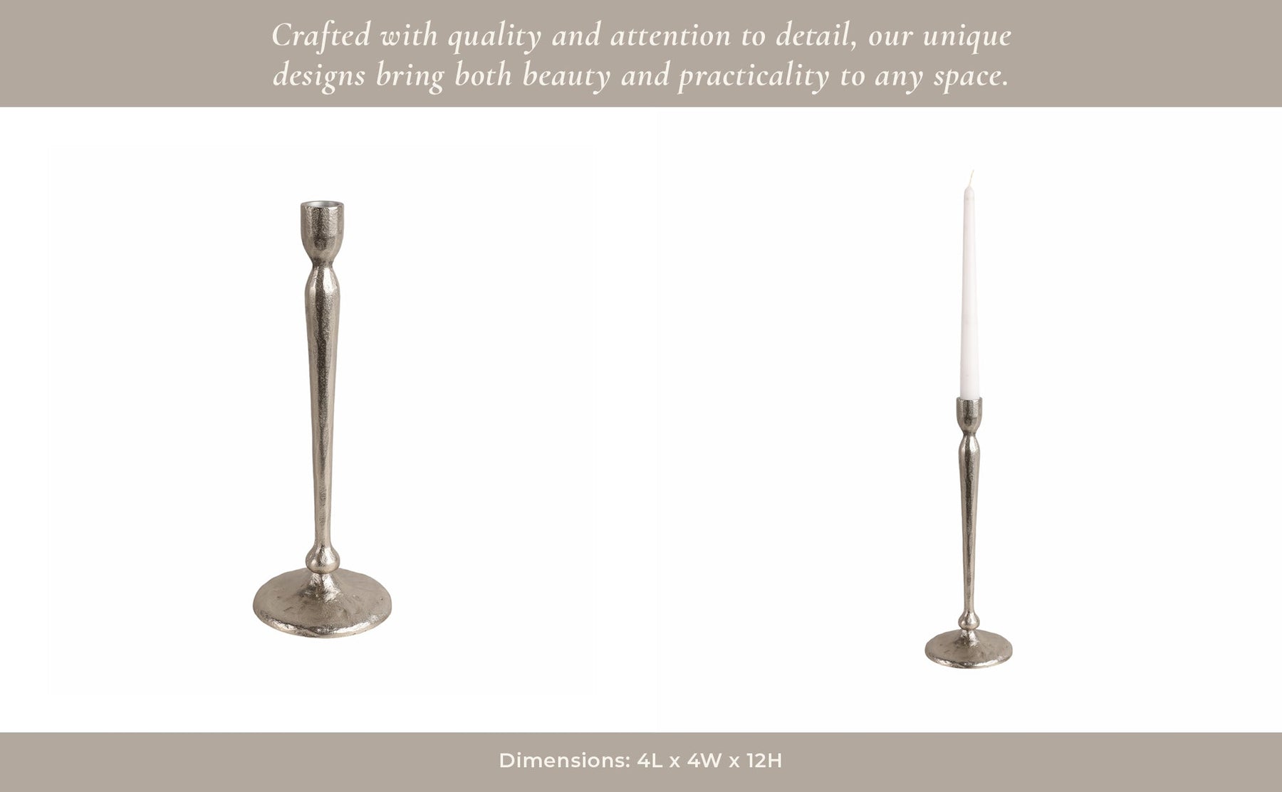 12x4" Traditional Cast Iron Taper Holder, SilverCandle Holders