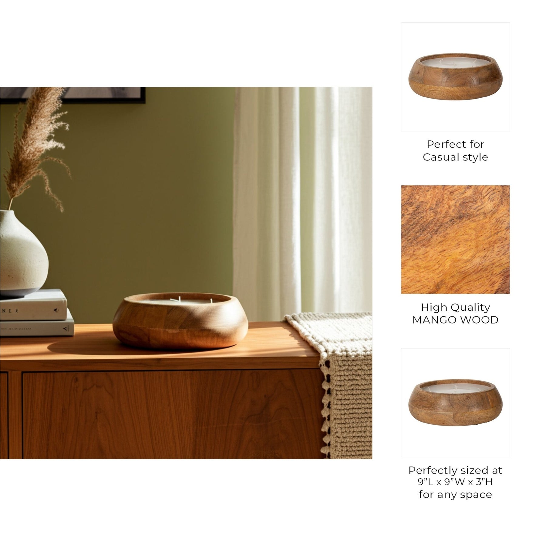 WOOD, 9" 20 OZ MODERN BOWL SCENTED CANDLE, NATURAL