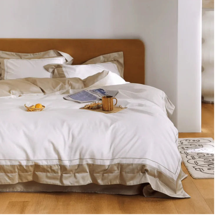 Printed Fabric White & Gold Accents Bedding Set-KING