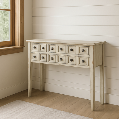 Newcastle 6 Drawer Antique White Console (6547854393440)