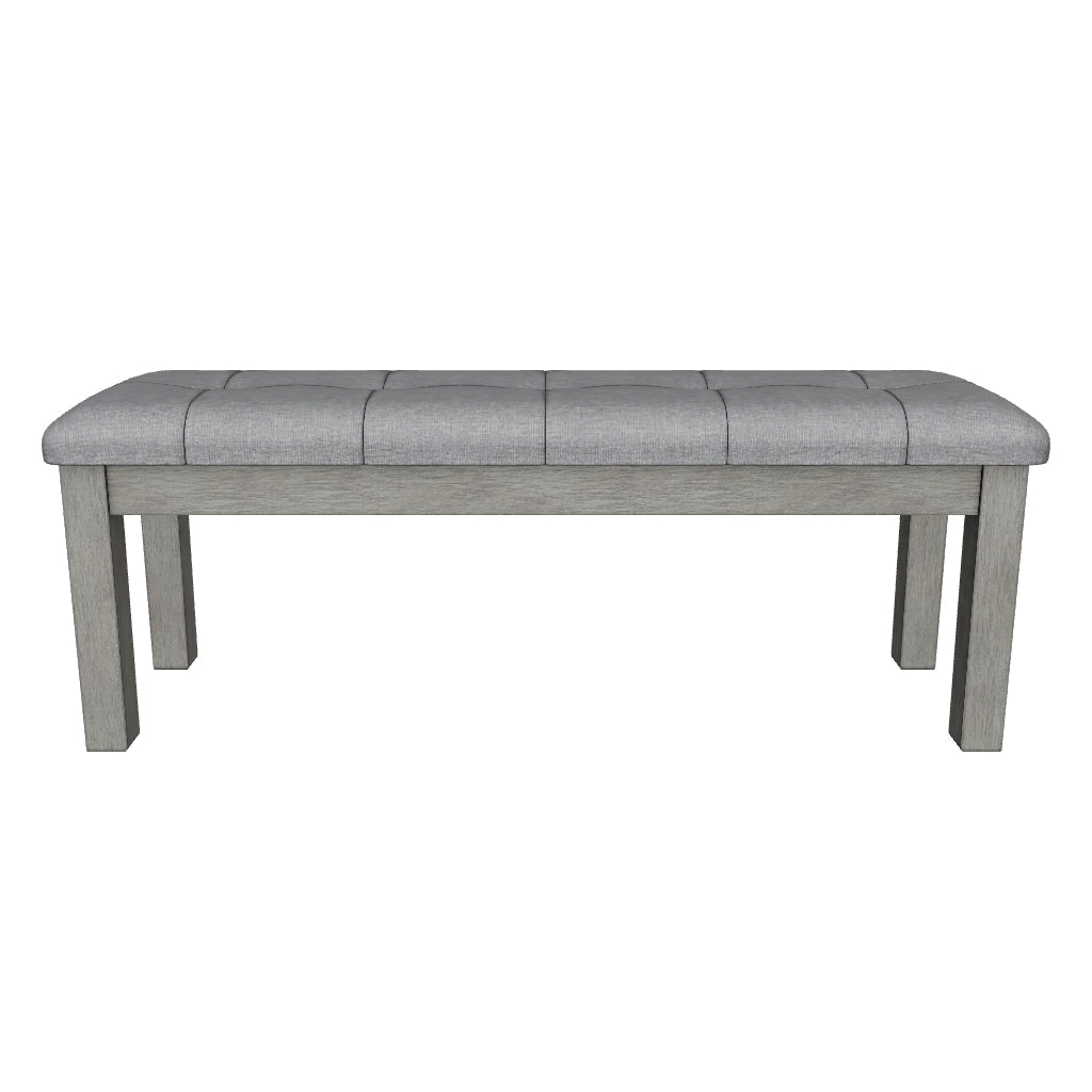 Cool and on-trend. The Hallanden dining bench sports a two-tone gray look for a contemporary-yet-casual feel. The cushioned foam seat in a gray textural fabric pairs seamlessly with the antiqued gray finish, providing you with a super-stylish and versatile seating option.