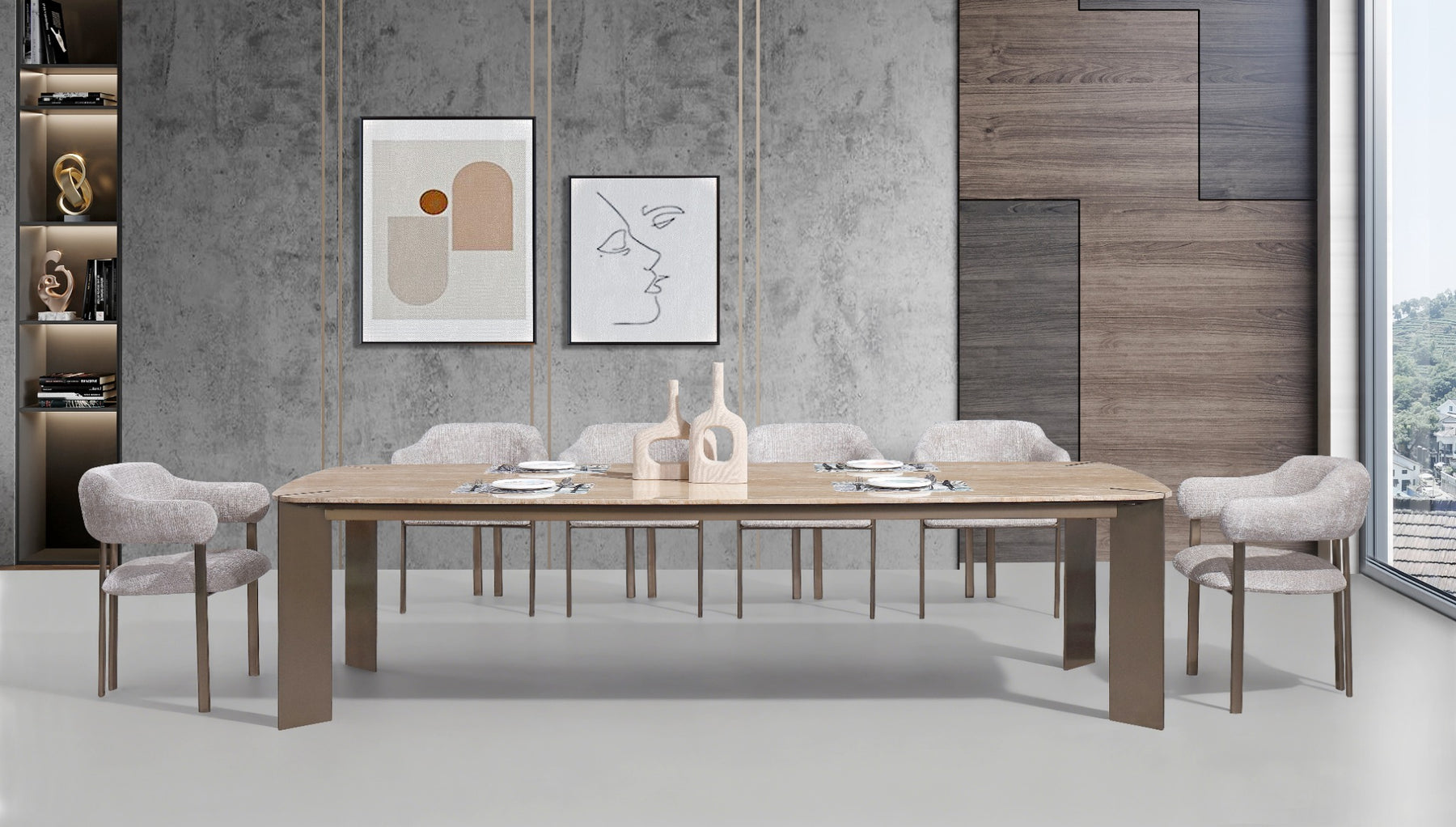 Arcline Beige Dining Table – 300 cm (10 Seater)