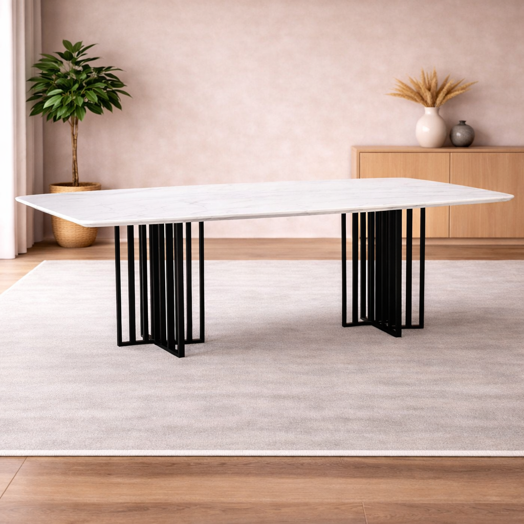 Black Bars Marble Dining Table- 8 Persons