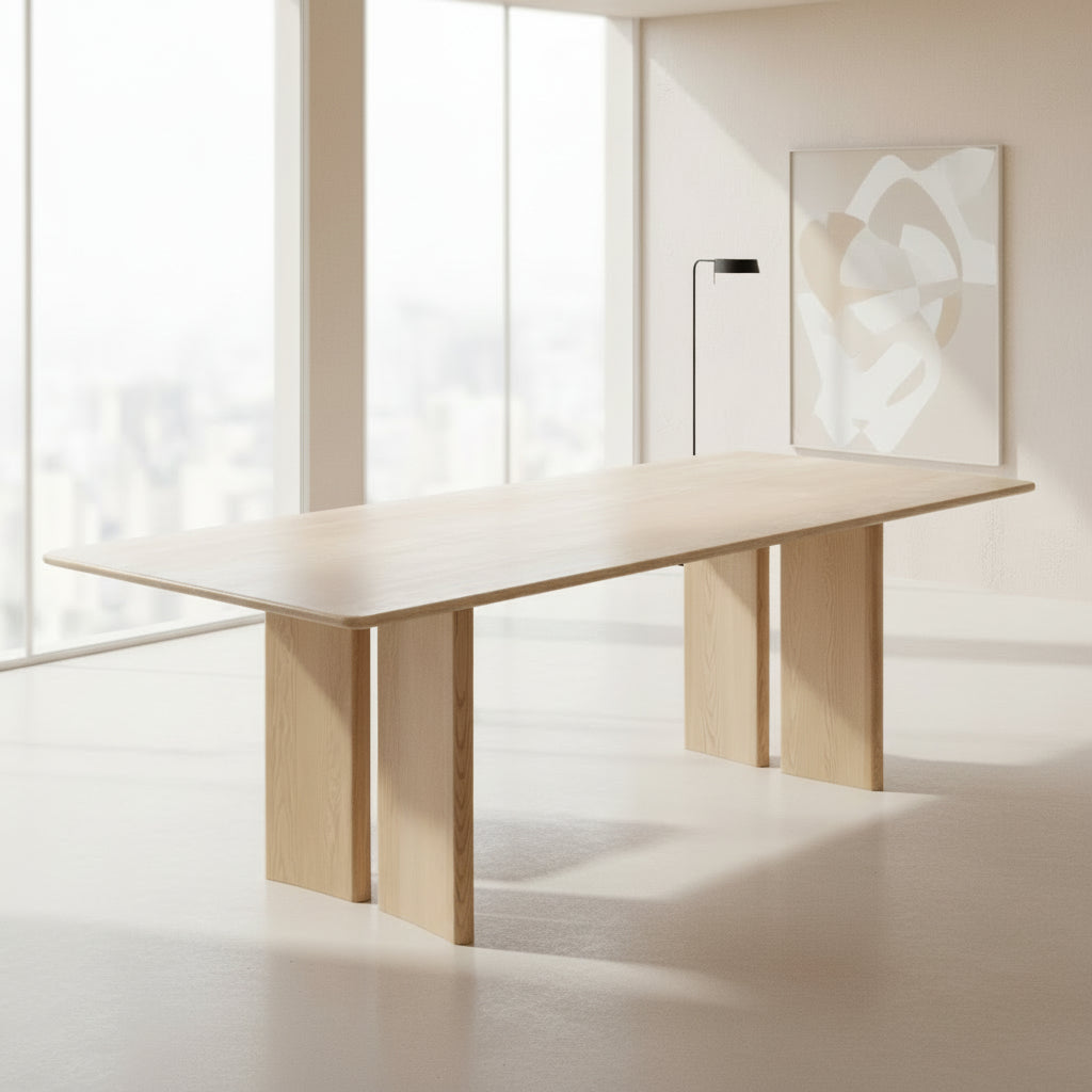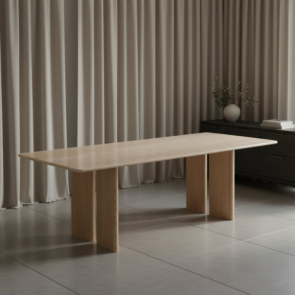 Travoli Dininng Table Travertine top, Plywood, Solid American Ash. American Ash Veneer
