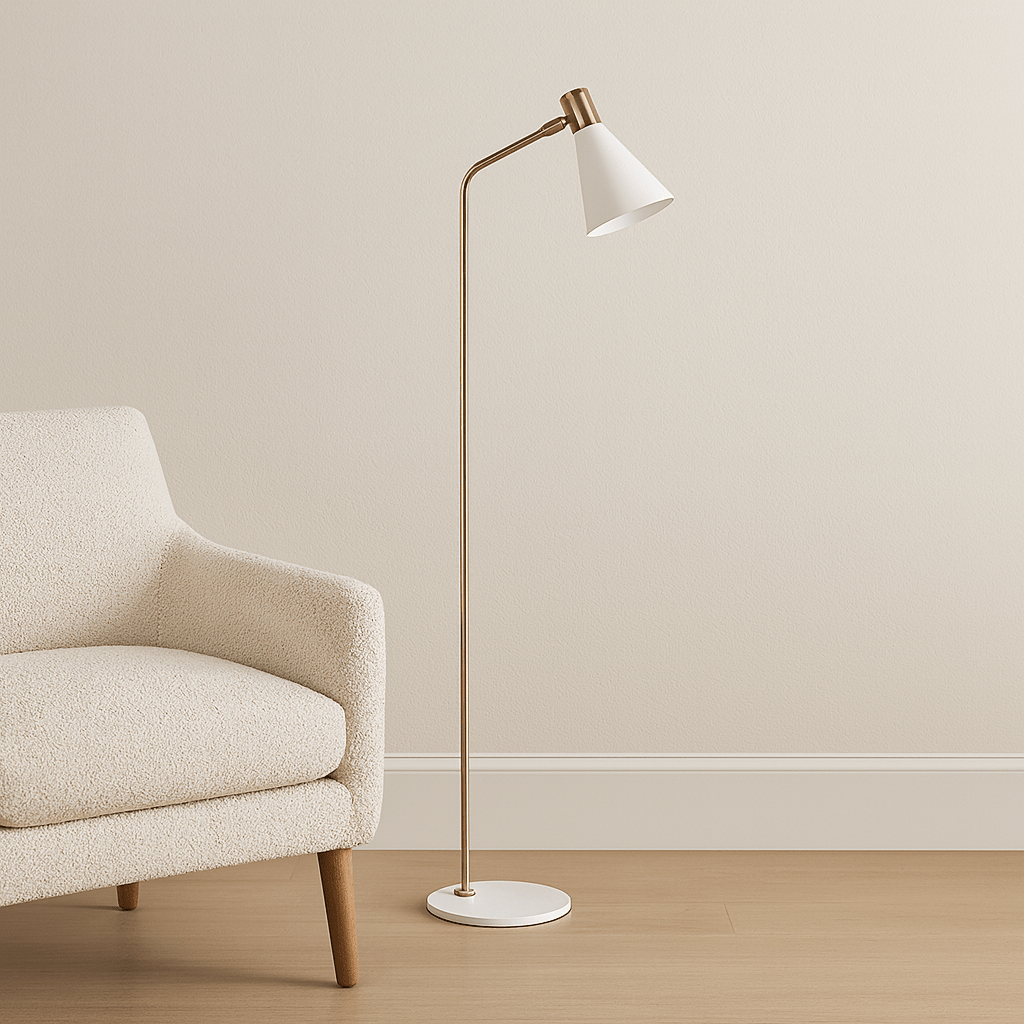 60" METAL FLOOR LAMP, WHITE/GOLD