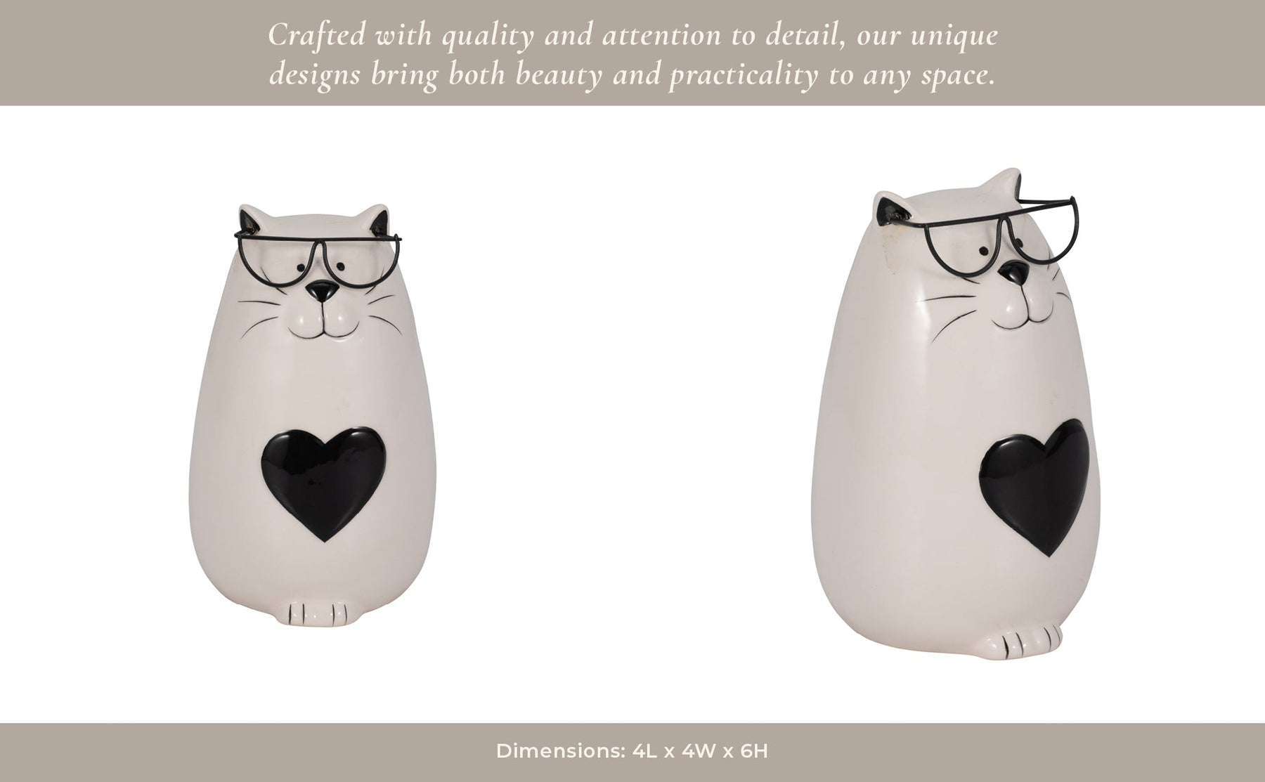 6" Heart Tummy Kitty With Glasses, White/black - Al Rugaib Furniture